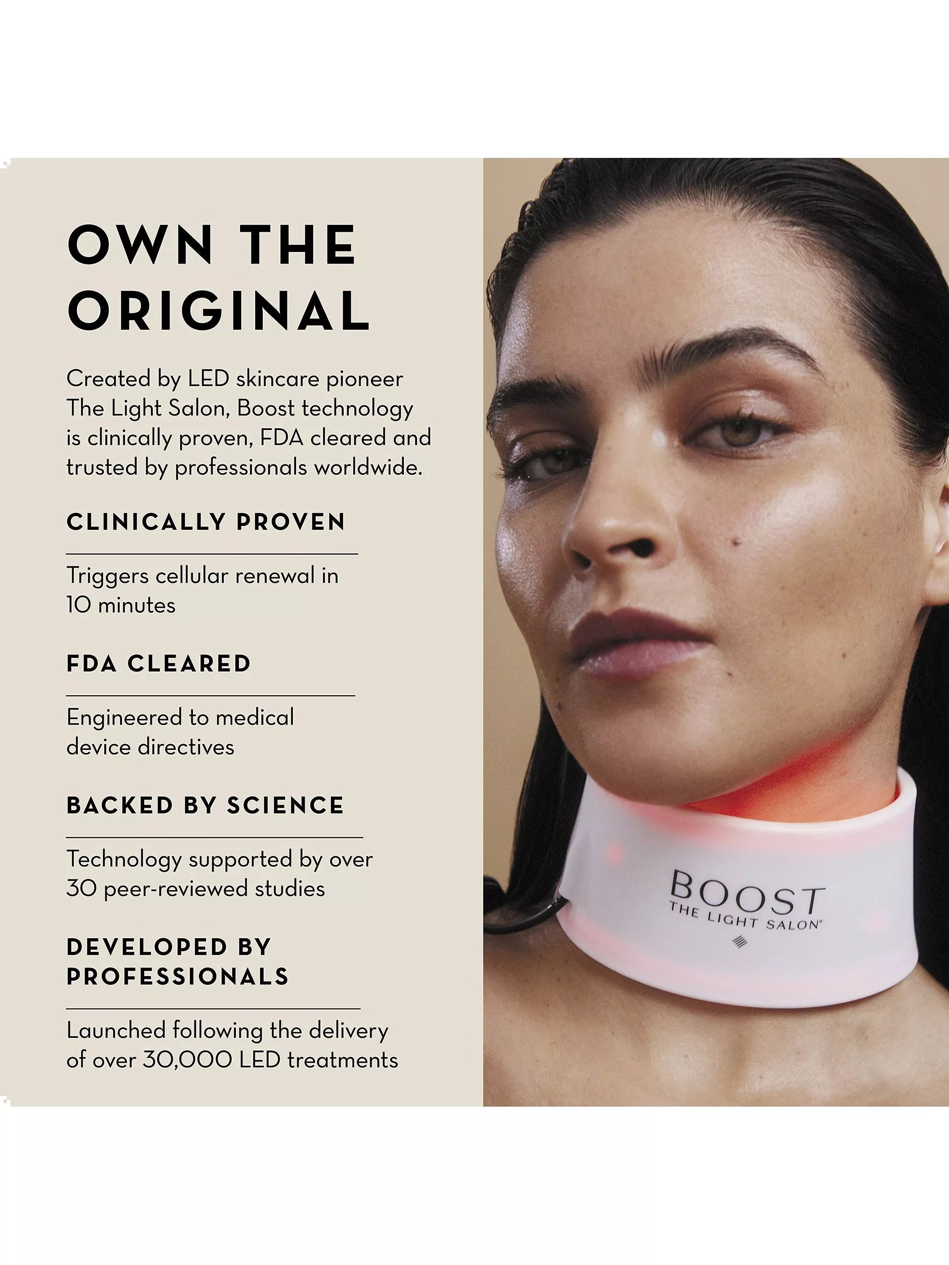 Rejuvenate your skin with the Light Salon Boost LED Collar, a revolutionary at-home skincare device. This portable collar complements the Boost Mask, offering a convenient way to enhance your skin's health and appearance. Experience the visible benefits of advanced LED technology for a radiant complexion.