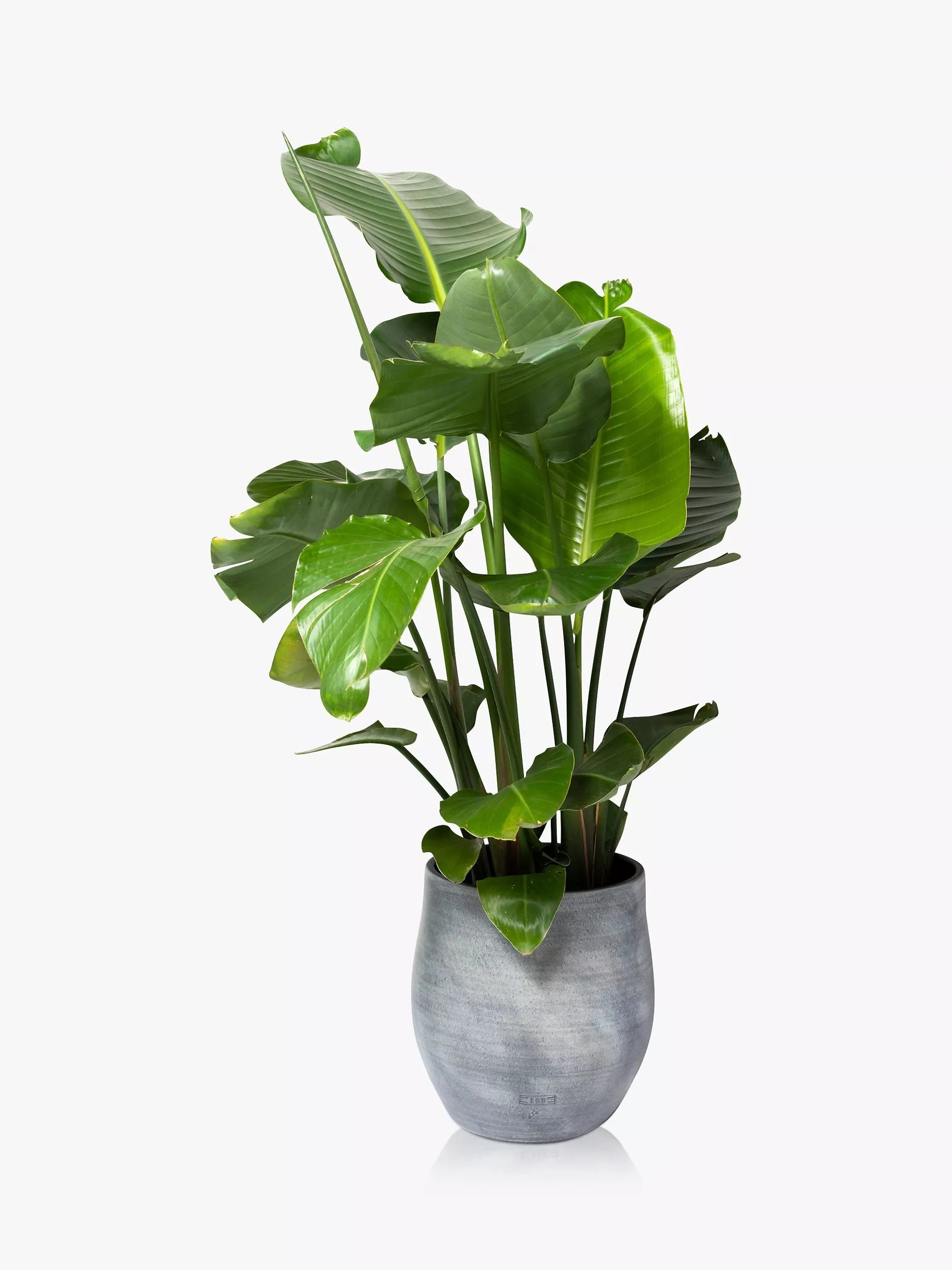 An XL Strelizia Nicolai, also known as Bird of Paradise, is a stunning addition to your home. This more unusual plant is a thing of absolute beauty and the immense paddle-shaped leaves are absolutely striking. This exotic plant is also known as a Wild Banana and paired with The Little Botanical Large concrete look ceramic it's a real statement piece.