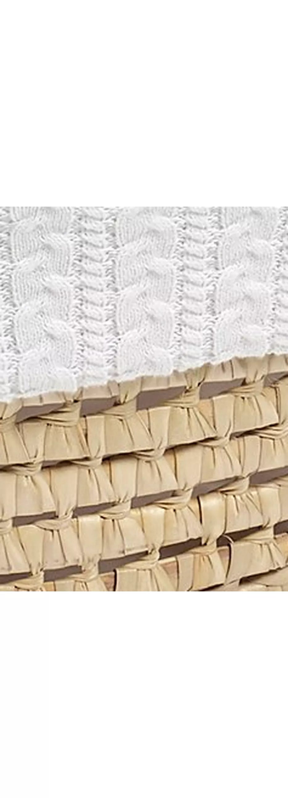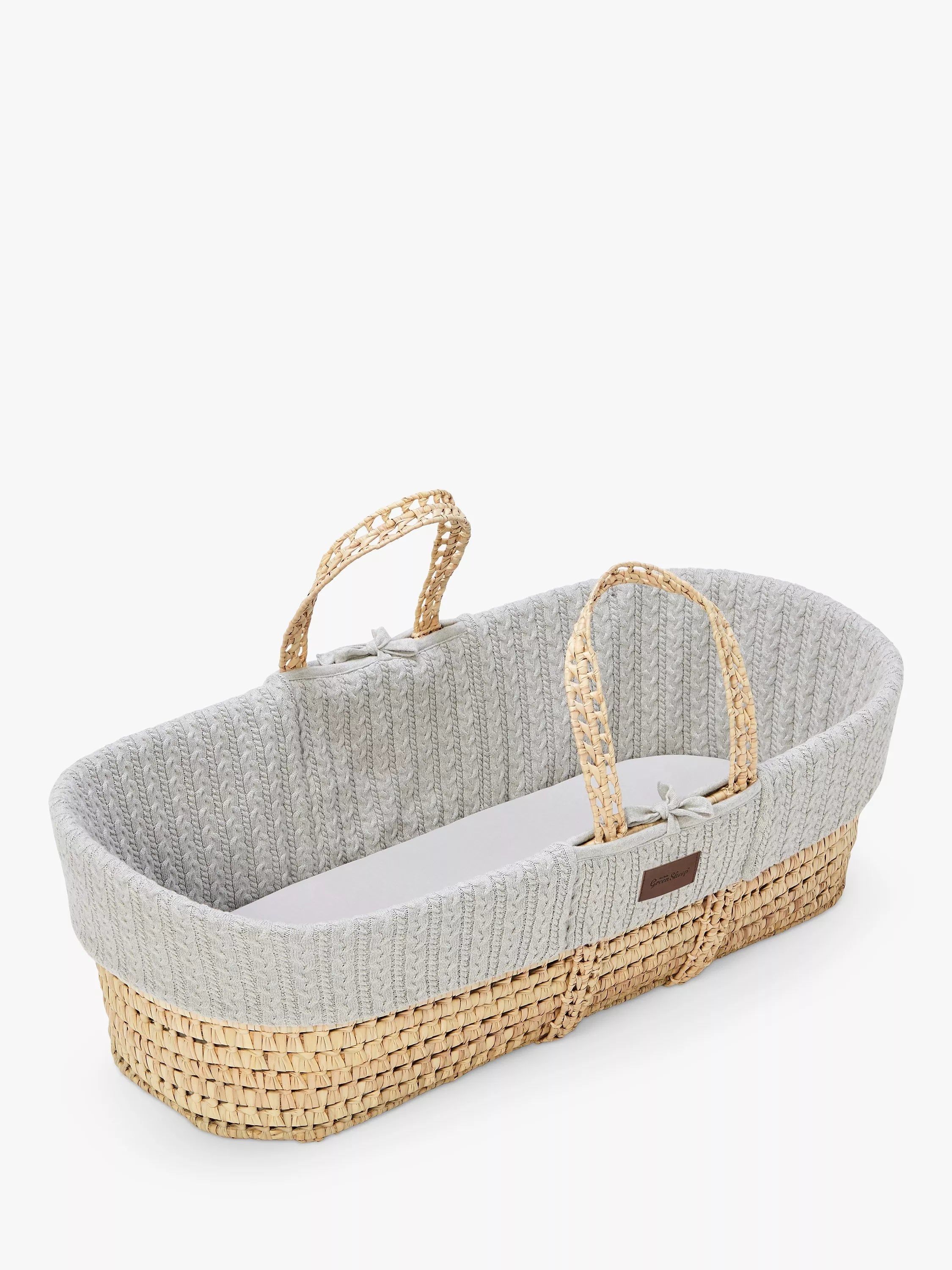 Create the most natural sleeping environment for your little one with this stunning organic knitted Moses basket. Made from strong natural palm leaf, it is nice and light, making it easy to pick up and move around the home. The natural palm also makes it tougher and more durable than other Maize made baskets. The organic cable knit liner is super soft and breathable, important to help air circulate and keep little ones all cosy and snug.