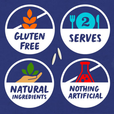 FeaturesReady in 2 mins. Gluten free. Free from artificial colours, flavours and preservatives. Suitable for vegetarians & vegans.