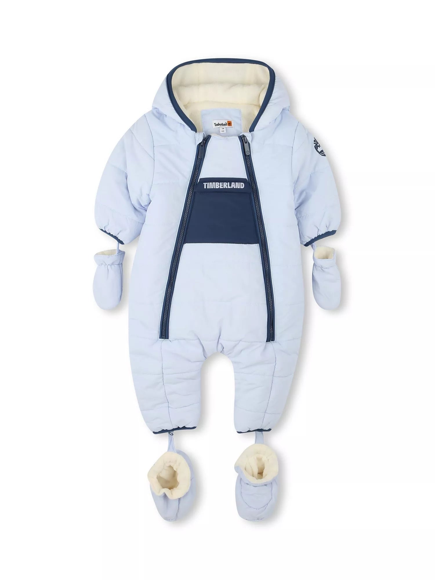 This snug snowsuit has a super cosy faux fur lining and its matte effect outer fabric is water repellent. Designed with a double zip fastening, removable mittens and a branded finish on the front and sleeve.