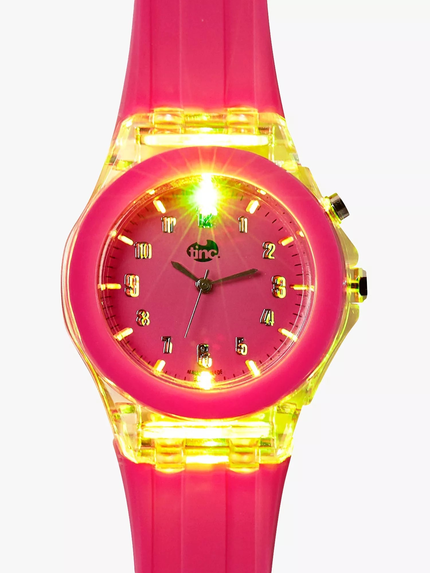 Take a Tinc disco with you wherever you go! An amazing kids disco light up watch! Wear this to have your own portable grooving boogie light on your wrist with the added benefit of being able to tell the time!