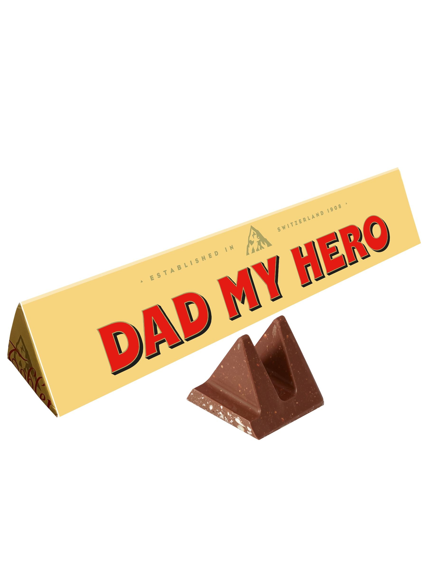 1 Toblerone 360g Bar. 1 Dad my Hero cardboard sleeve.