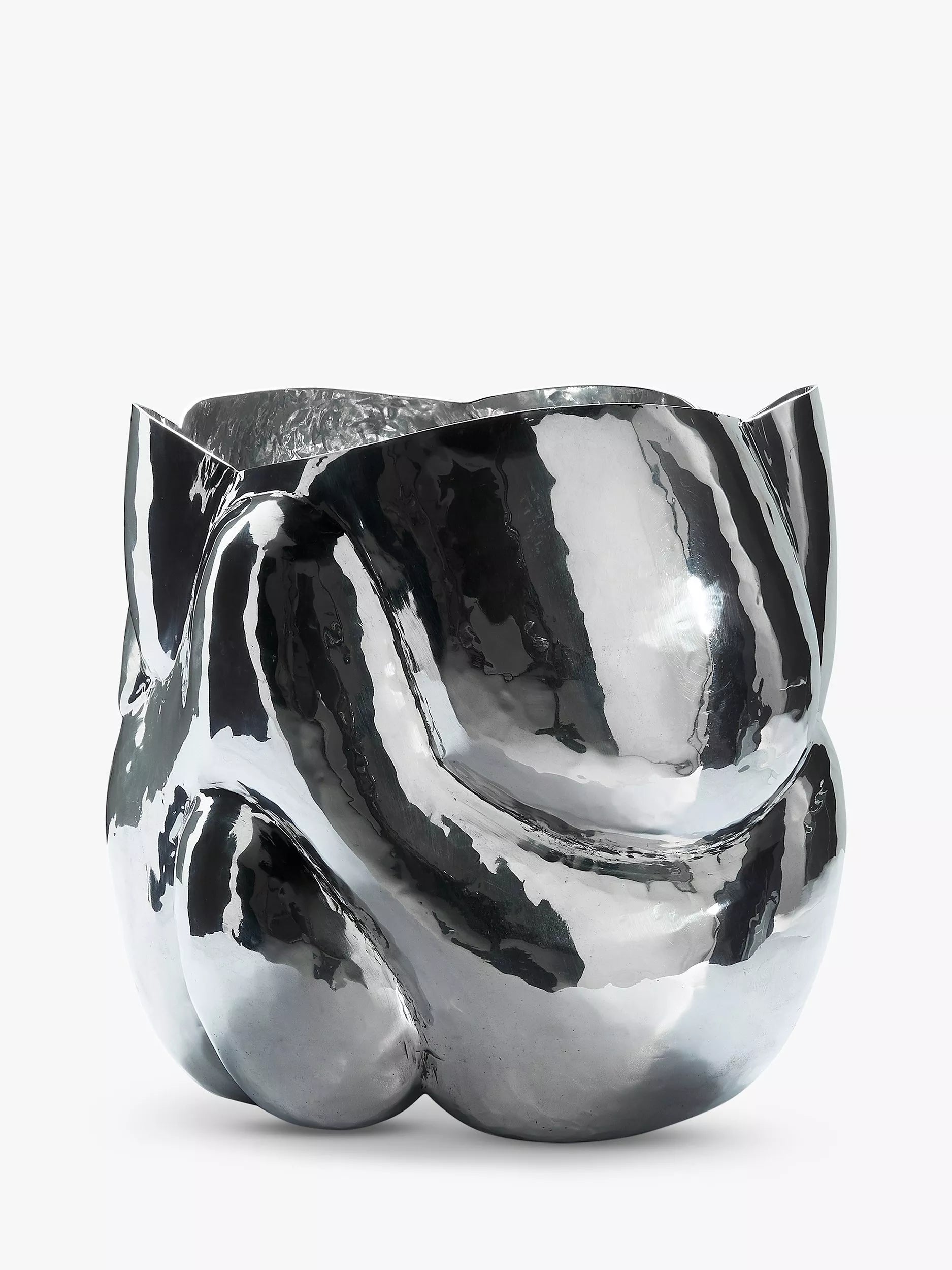 Made from stainless steel this Tom Dixon vase has the marks of the maker, with every hammer and indentation from stretching and warping the metal preserved in the final piece to reflect the workmanship that's gone into the design.