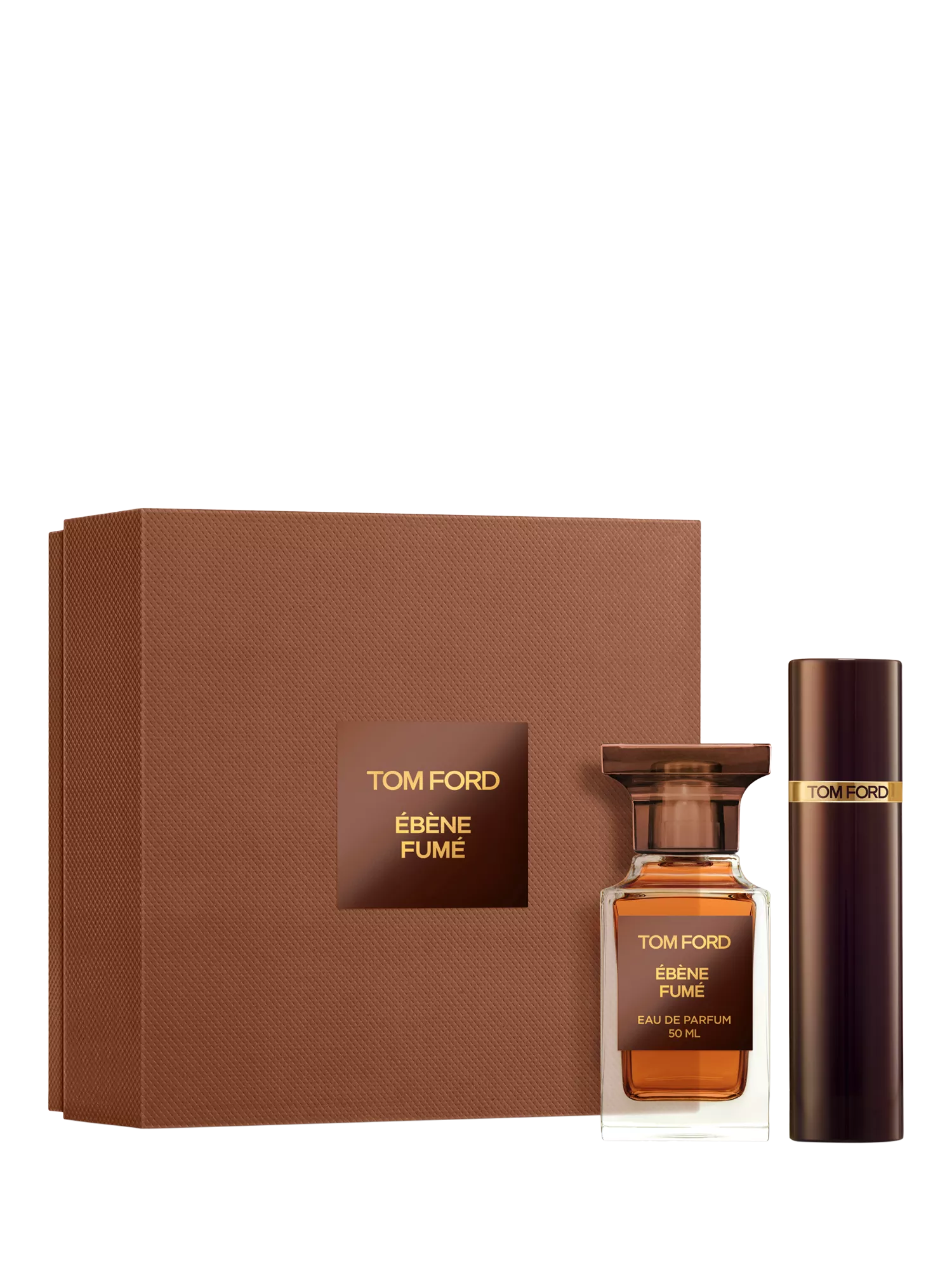 The gift of Ébène Fumé. A meditative woody amber scent featuring notes of palo santo and rose. This gift set features a full-size Eau de Parfum bottle and a travel spray.