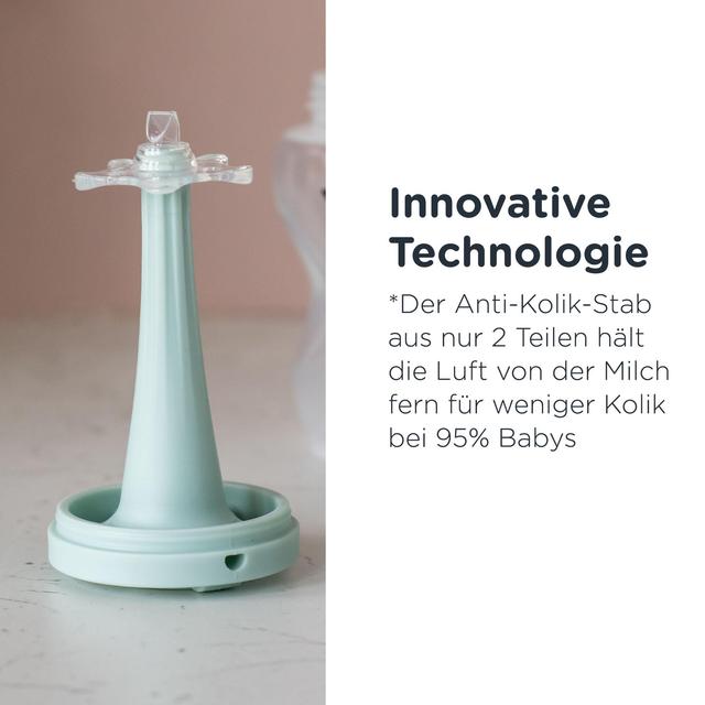 This is no ordinary bottle. Tommee Tippee Advanced Anti-Colic baby bottles work a little differently from regular bottles to help combat colic while ensuring a comfortable feeding experience for you and your baby. It has a teat thatâs Closer to Nature because of its breast-like shape to help your baby have the most natural bottle-feeding experience. The unique 2-piece, anti-colic venting system draws air away from milk and the star valve keeps milk from traveling up the tube meaning less wind, reflux and discomfort. Our Advanced Anti-Colic bottles are scientifically proven. Lab tests prove our anti-colic valve is more sensitive than any otherâ and thatâs why 95% of mums using our bottle agree it reduces colic*. Thanks to its brand-new design, the Advanced Anti-Colic baby milk bottle is now self-sterilising, making clean-ups a whole lot easier. Follow these simple steps to sterilise your bottle in the microwave in just 3 minutes**: Step 1: Thoroughly clean your bottle in warm, soapy water and rinse Step 2: Fill the bottle with 50ml of cold water Step 3: Fit the teat, screw ring and cap together and loosely place them on the bottle base. Pop in the microwave for 3 minutes Step 4: Remove the water inside the bottle and reassemble Please note that the time to sterilise will change slightly based on how many bottles you place in the microwave at once. For added peace of mind, the Advanced Anti-Colic baby bottle is completely mess-free and leakproof when the screw ring, teat and cap are all secured (even if itâs turned upside down or shaken). Itâs also 100% BPA free so itâs safe for your baby. However you choose to feed your baby - whether itâs breast milk, formula or a bit of both - our Advanced Anti-Colic bottles are #1 for helping to ease the discomfort of colic, gas and refluxâ â . *Based on an independent survey of 43 US mums of 0-12m, currently use TT AAC, Feb 2023 **Based on placing one bottle in microwaves from 700-1000w. Sterilising time increases with every bottle added to the microwave. ***Tested against pseudomonas, E.coli, staphylococcus and aspergillus brasilliensis. â In testing vs. 10 leading bottles, AAC valve requires less force to activate â â In an independent survey of 1,006 UK mums in Feb 2023, more would recommend TT AAC for easing discomfort of colic, gas & reflux than any other bottle