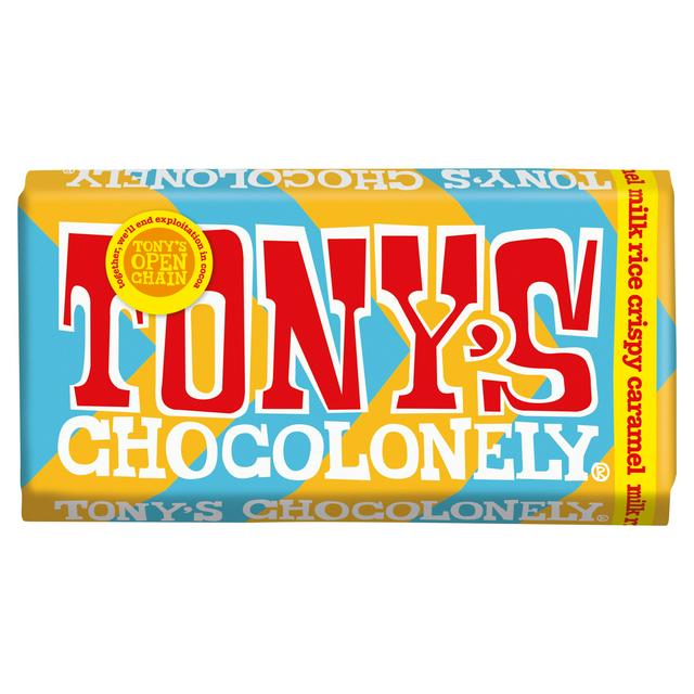 Product details Description Milk chocolate with pieces of caramel and puffed rice crisps. Tony's open chain - together, we'll end exploitation in cocoa 123 Traceable cocoa beans Crazy about chocolate, serious about people Hi there, we're Tony's chocolonely. We exist to end exploitation in cocoa. Not just the cocoa in... Read More