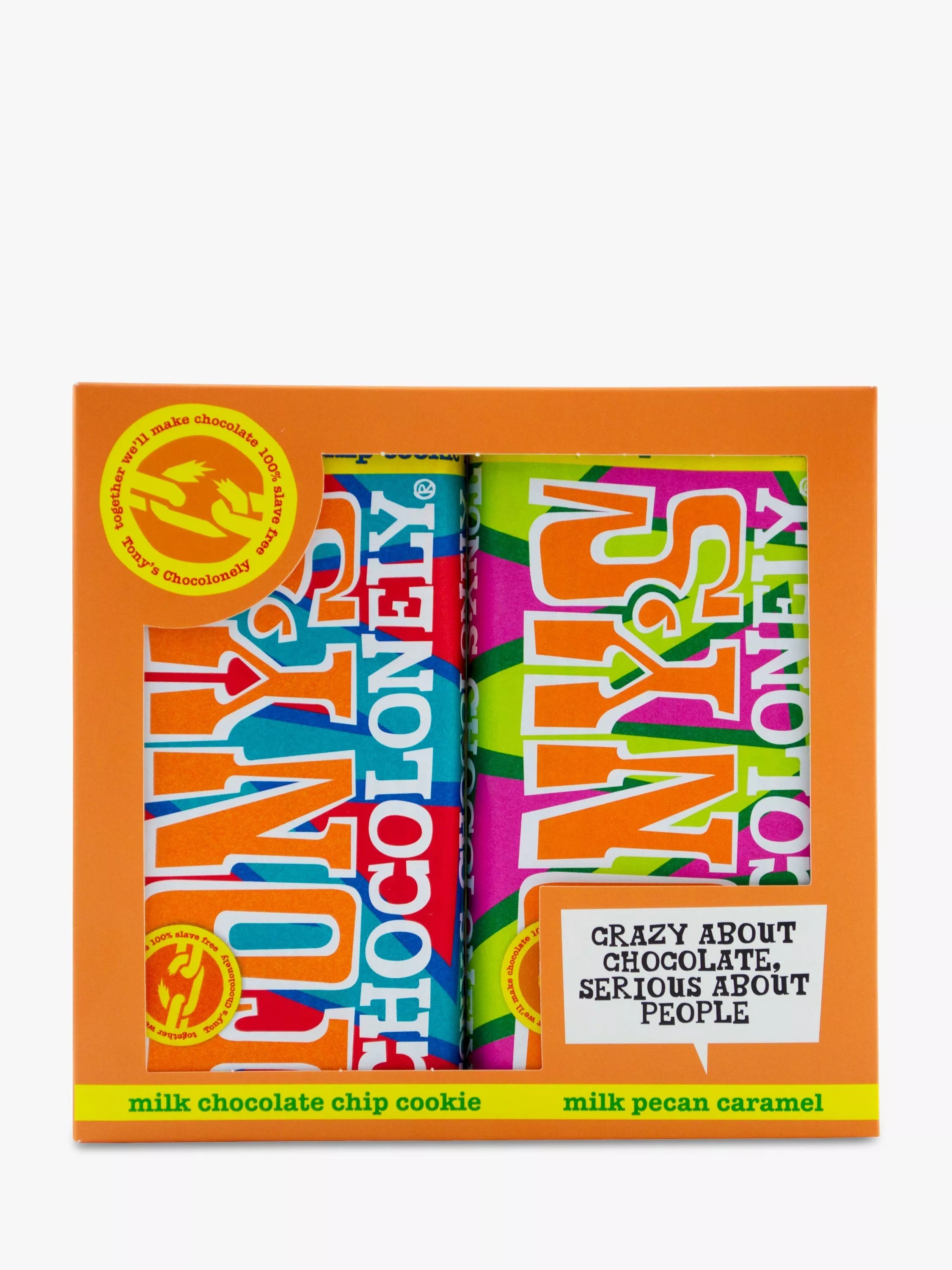 Milk chocolate chip cookie and milk pecan caramel chocolate bars.