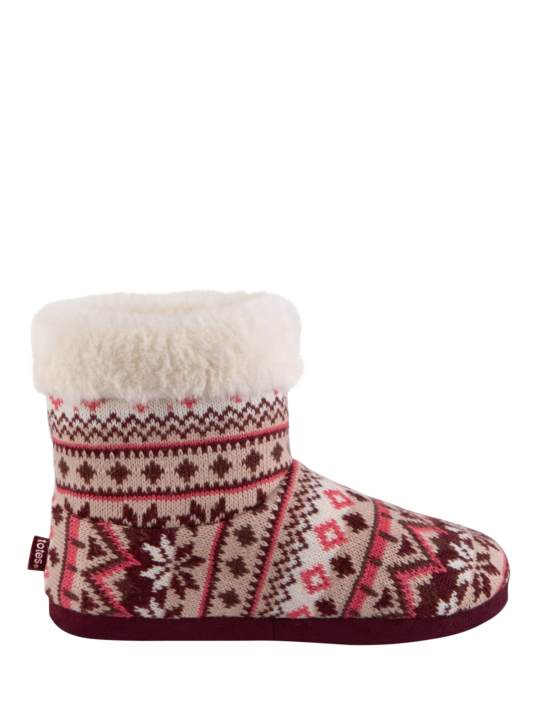 Indulge in cosy luxury with these Fair Isle knit boot slippers, featuring a sumptuous faux fur lining and supportive memory foam for ultimate comfort. Designed with a durable textile TPR sole, these slippers are as practical as they are stylish. Beautifully packaged, they make the perfect gift for any occasion. Treat yourself or a loved one to the perfect blend of warmth, comfort, and elegance.