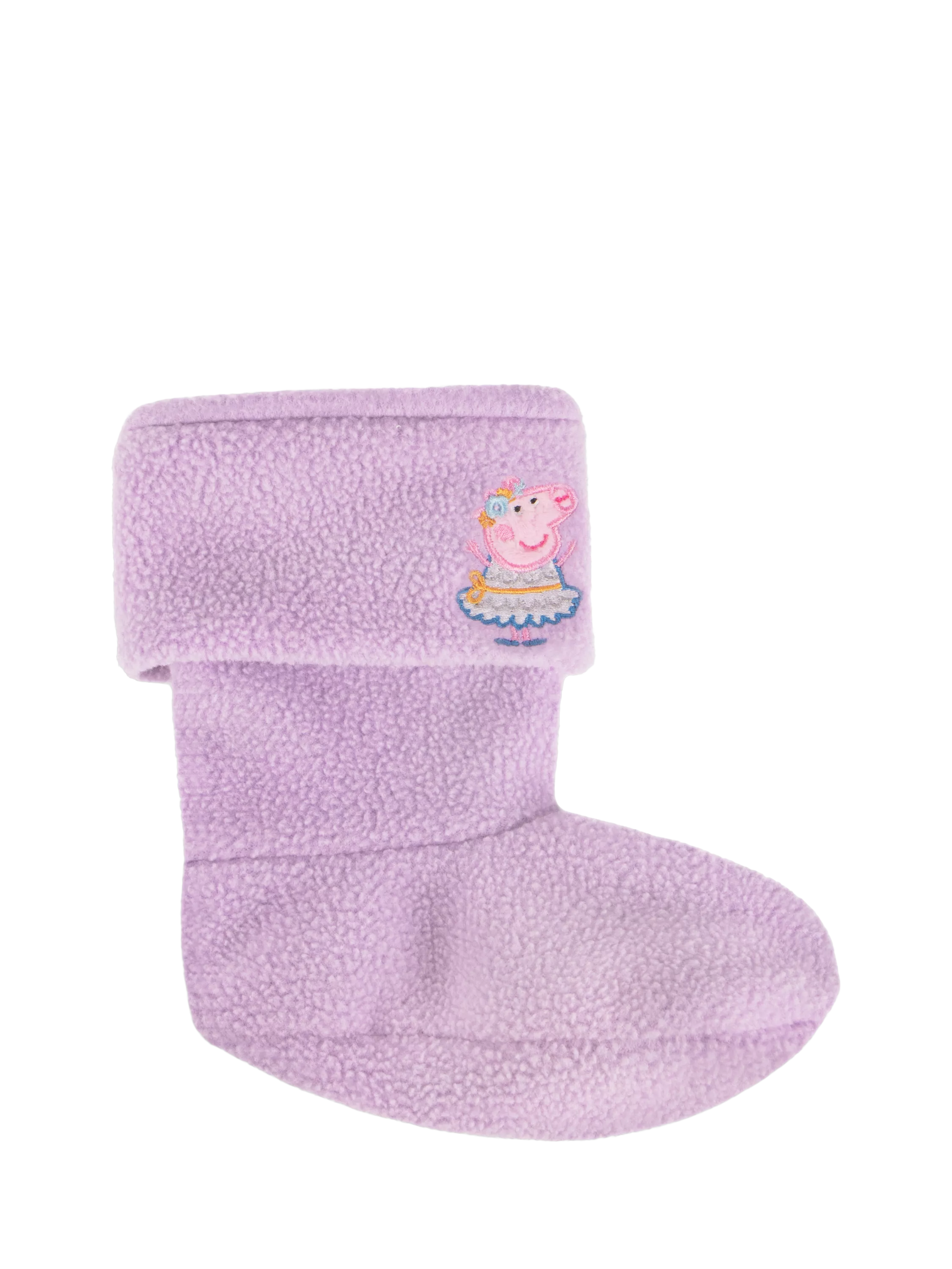These novelty welly boot liners showcase the beloved Peppa Pig character. Designed with fleece lining for warmth and comfort, along with a slip-resistant tread. Simply pop these liners under their wellies, ensuring George peeps over the top, then they're ready to tackle the splashiest of puddles!
