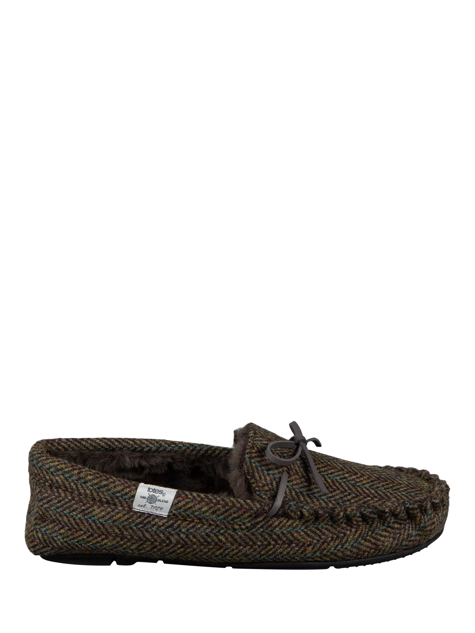 Delivering on both comfort and practicality, these moccasin slippers from totes are made from warming wool for a luxurious feel. Featuring smart suedette and leatherette trims, complemented by a warm and cosy faux fur lining, they're designed with a textured sole for reliable indoor wear.