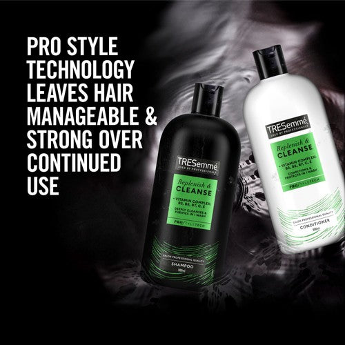 Tresemme Replenish & Cleanse Shampoo is designed to deeply cleanse and purify hair, removing build-up and heavy residue, Enriched with vitamin C, this cleansing shampoo for greasy hair revitalises from within to add healthy body and gleam, This professional-quality shampoo gives your hair that fresh, just-left-the-salon feeling, Our hair care experts are at the forefront of science and safety – every ingredient is carefully selected to ensure your hair receives the best possible care, Apply Tresemme Replenish & Cleanse Shampoo, lather and rinse, and follow with the Replenish & Cleanse Conditioner to maximise results, With Tresemme professional hair care, you can create your personal style to achieve your aspirations with confidence
