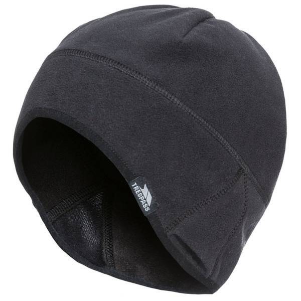 This shaped Trespass beanie hat offers comfortable wear designed with specific material blends for good flexibility. It features distinct stretch panels positioned near the ears for an enhanced, secure fit during outdoor activities. This essential winter accessory is constructed primarily from durable polyester fabric for reliable use.
