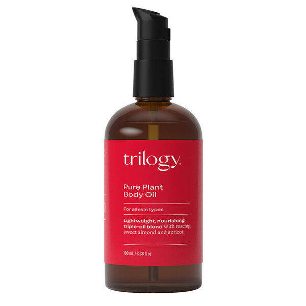 Product Information trilogy pure plant body oil an easy to absorb allover body oil ideal for daily hydration and to help smooth and sooth scars and stretch marks nourish skin with the three pure plant oils rosehip sweet almond and apricot