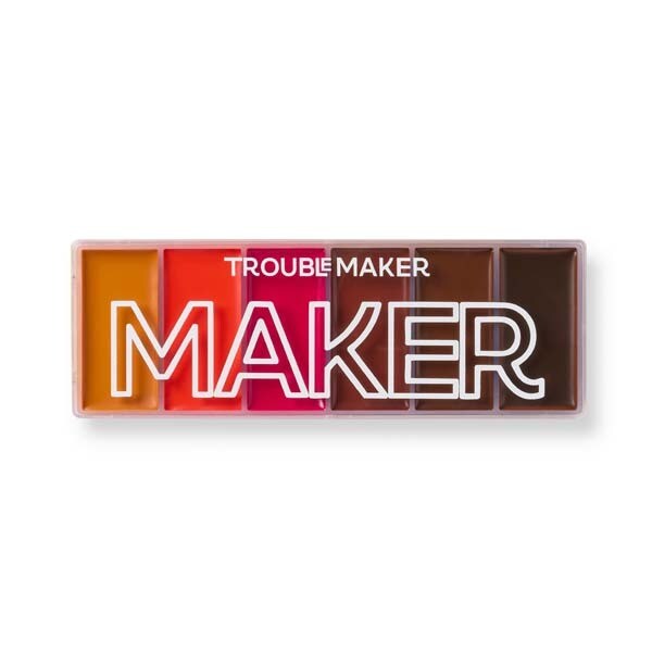 Putting the MAKER in Trouble Maker. 6 Rich creams in a mix of blush, bronze and contour shades. All created with vitamin E + shea butter for smooth, lightweight + long lasting colour. The best part? You can mix all the shades in the palette to create your own customised shades with endless potential. 3 shades in light, medium + deep.