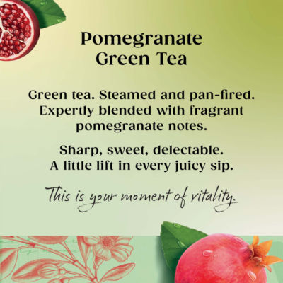 What does it taste like? The Pomegranate is thought to have been brought to China by sea traders amongst their spices, teas and precious stones. This deep pink fruit, with its naturally sharp yet sweet flavour blends perfectly with green tea. What makes this tea different? Our crisp and refreshing green teas start their journey from the dewy, misty tea gardens of China. We've been picking the best leaves and buds for three centuries. Our master blenders use their detailed knowledge of these regions to create this invigorating blend which is full of character and ready to brighten up your day.