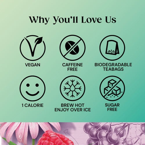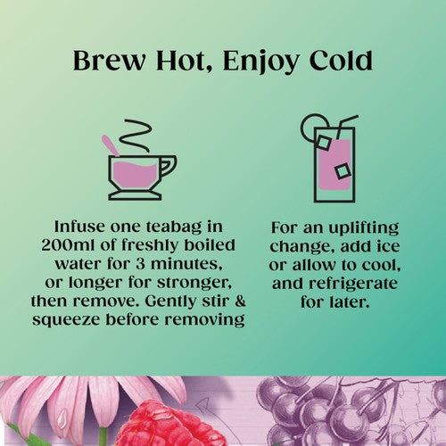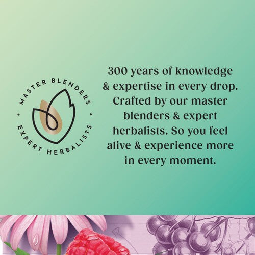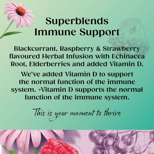 Blackcurrant, Raspberry and Strawberry flavoured Herbal Infusion with Echinacea Root, Elderberries and added Vitamin D.