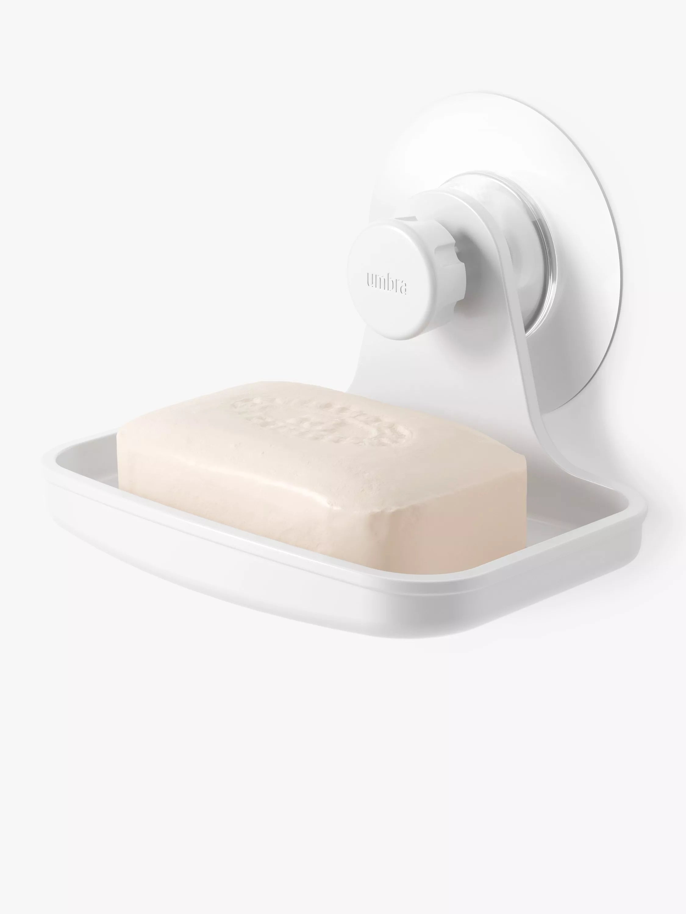 Soap dishes tend to pool water but with the Umbra Flex adhesive soap dish you don’t need to worry because the integrated drainage holes prevent water from collecting at the bottom of the dish. Easy to install, Flex includes non-damaging, waterproof adhesive strips that can be applied on many surfaces such as tiles, dry wall and concrete.