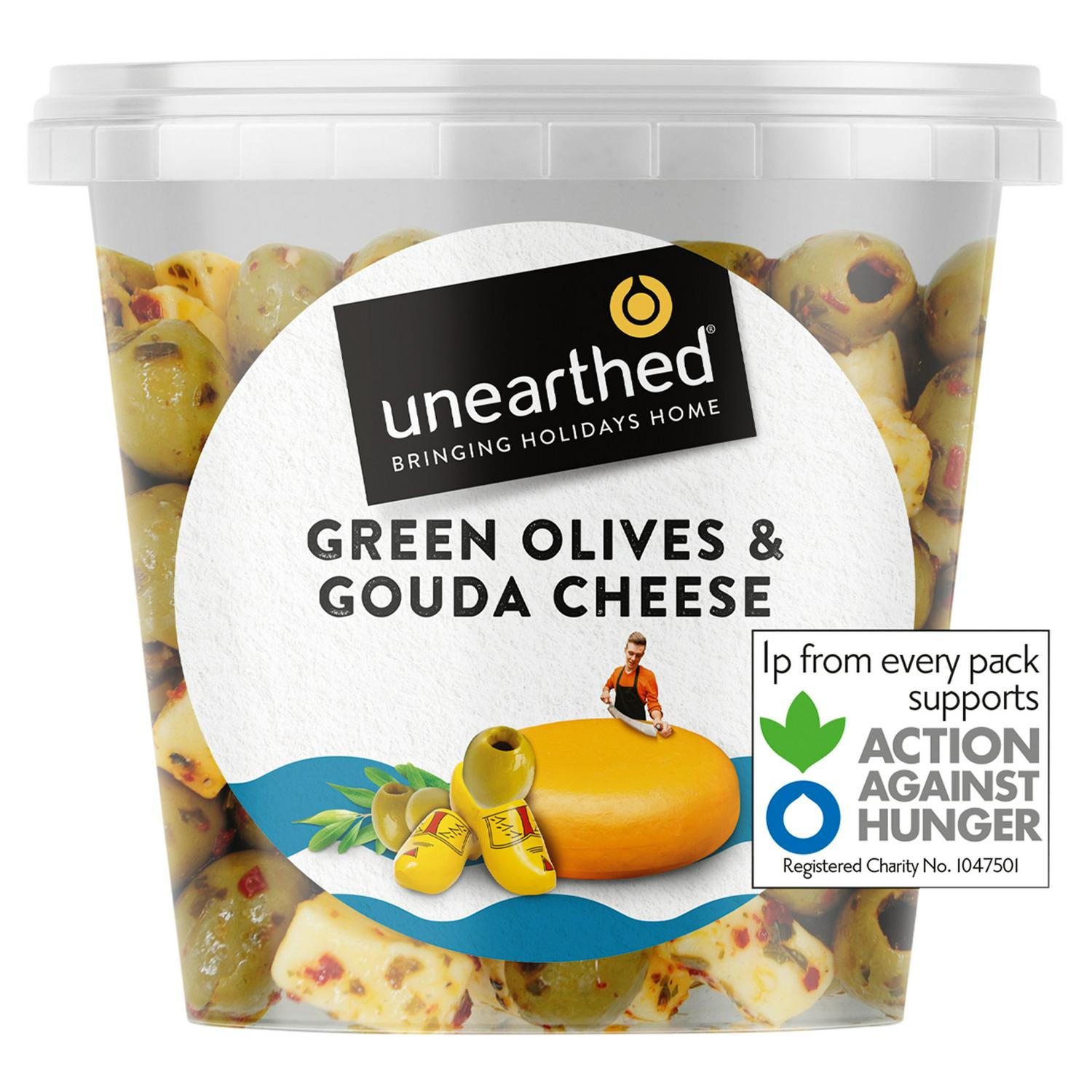 Enjoy this flavourful combination of green olives paired with creamy Gouda cheese, making it a perfect snack or appetiser.