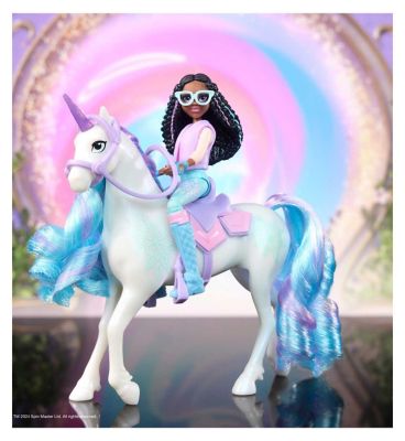 Read MoreCelebrate the bond between rider and unicorn with the Unicorn Academy Layla & Glacier Set. Inspired by the NETFLIX animated show and best-selling book series where friendship reins, this set will spark endless imaginative storytelling. 11.4cm Layla features realistic true-to-show details and 7 points of articulation for dynamic poses. Glacier stands at 12.7cm tall, complementing Layla’s look with Ice Magic markings and brushable blue, white and pink mane and tail (brush included). As you play, pose Layla to sit on Glacier and ride into adventure. With the removable bridle and saddle accessories, Layla can securely stay in place on Glacier. For more ways to experience Unicorn Academy with your favourite characters, look for the other small dolls, including Sophia, Ava, Isabel, Valentina and their unicorns (sets sold separately) and expand your world. For kids who enjoy unicorns and horse toys, dolls and accessories, doll house play, collectibles, plush toys and more, Unicorn Academy toys are fun birthday gifts for girls or gifts for any occasion. Experience enchanting Unicorn Academy adventures with the Layla & Glacier Set.