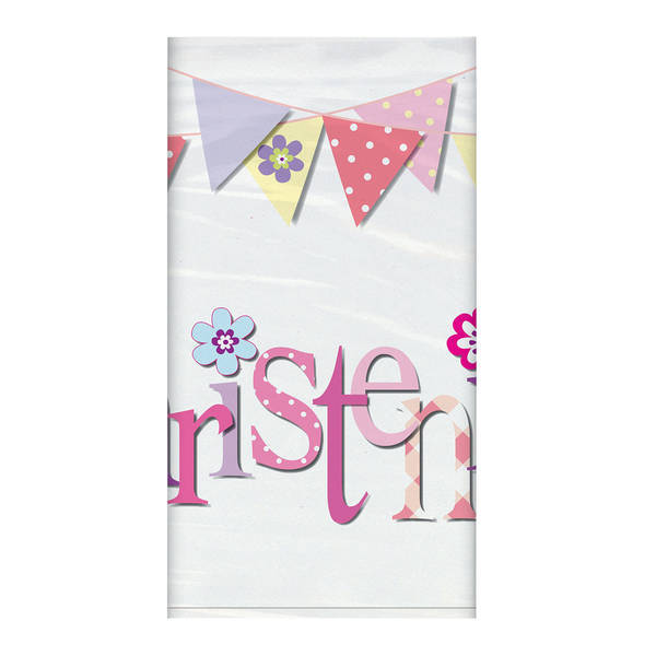 Product Information christening tablecover bunting design with all over print size 54 x 84in