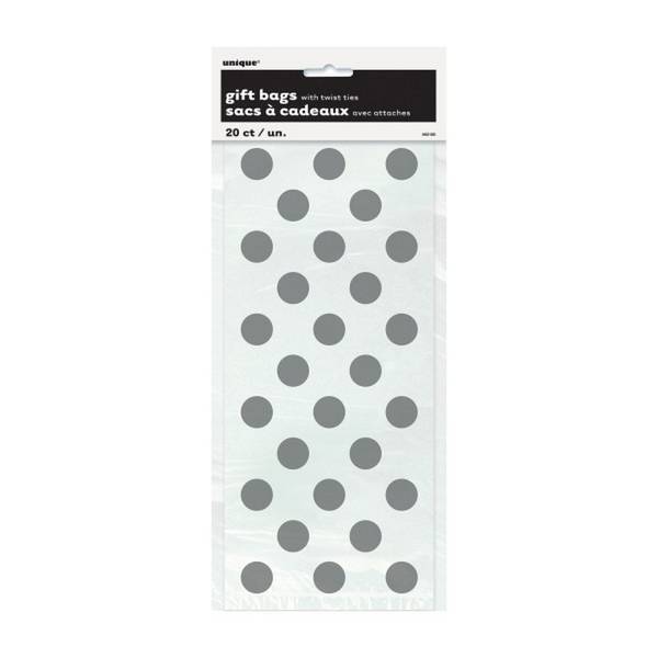 polka dot print cellophane gift bags supplied with twist ties size guide approx 28 x 128cm