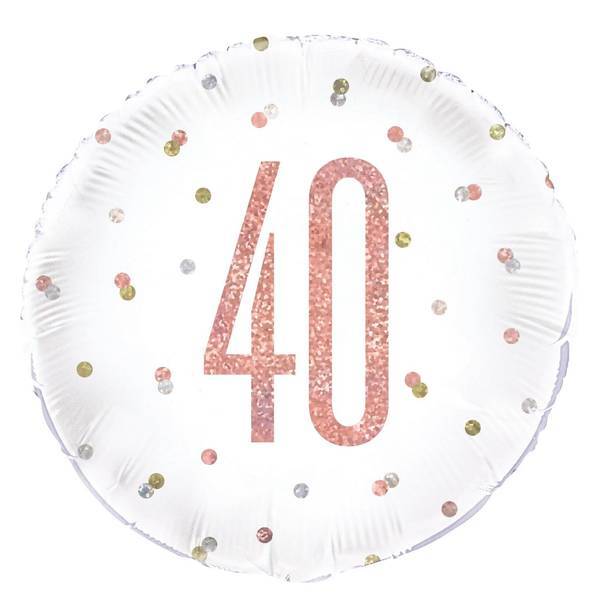 Read MoreMaterial: Foil. Width: 18in. Design: Glitter, Number, Polka Dot, Printed. Occasion: 40th Birthday. Shape: Round. Please Note: Supplied Deflated.