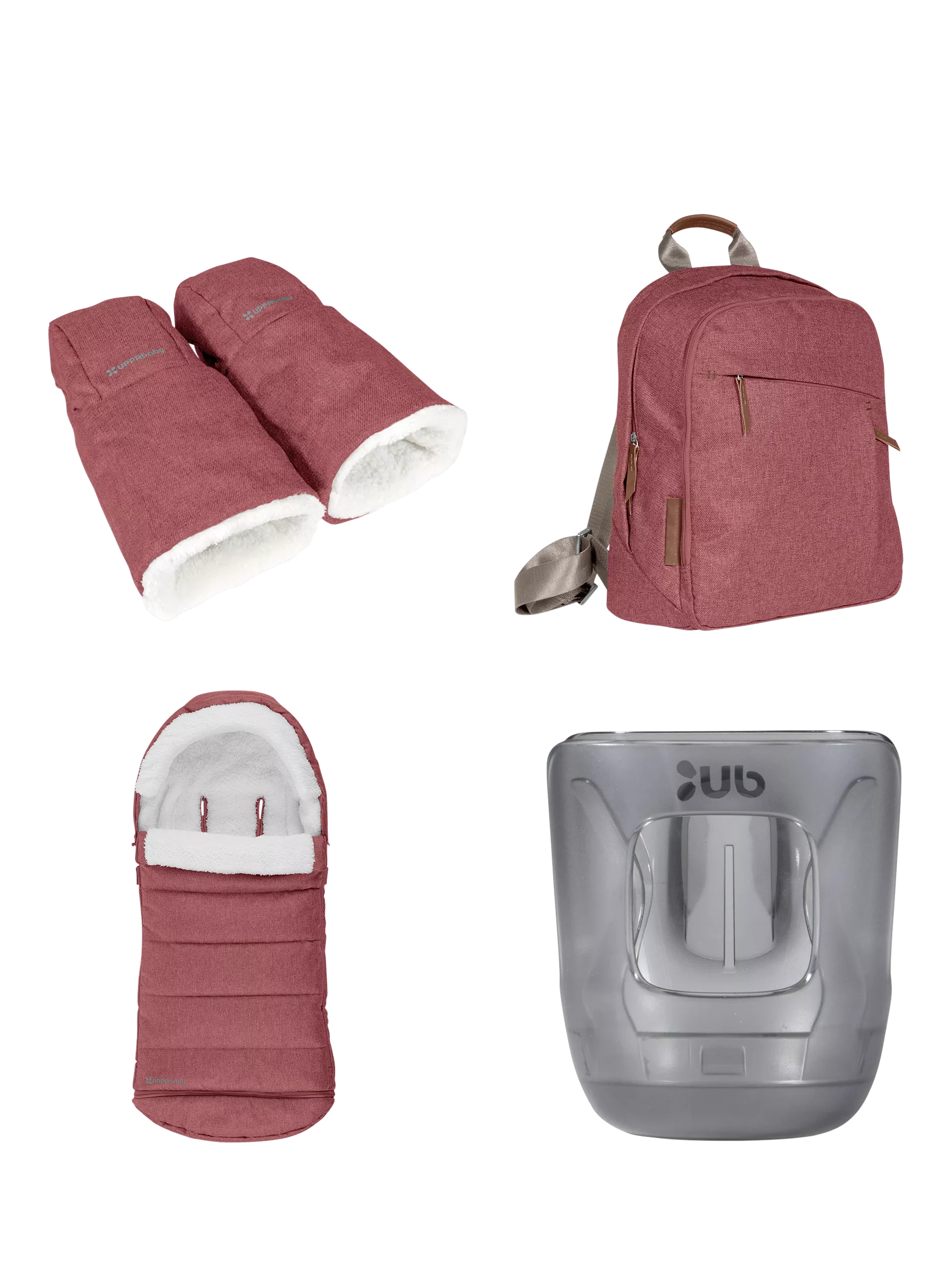 This 4 piece accessory pack comes with a footmuff, a cup holder, a changing bag and a pram glove.