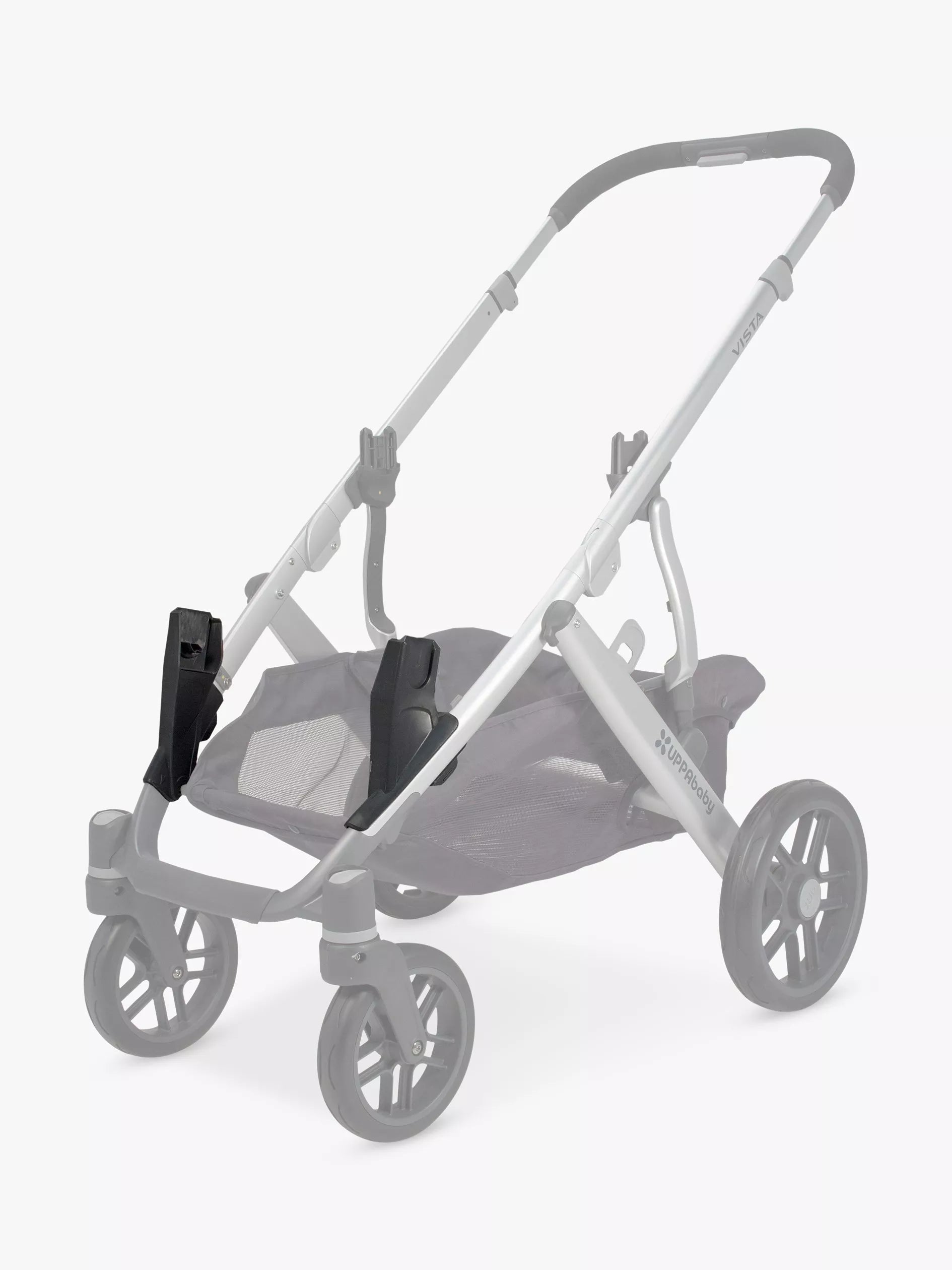 Baby car seat adapters for Maxi-Cosi, Cybex and BeSafe car seats. Attach directly to the front of your VISTA pushchair and simply click in your baby car seat. It allows two car seats to be fitted to the VISTA chassis for twins or a lower car seat in conjunction with the toddler seat for a newborn and toddler.