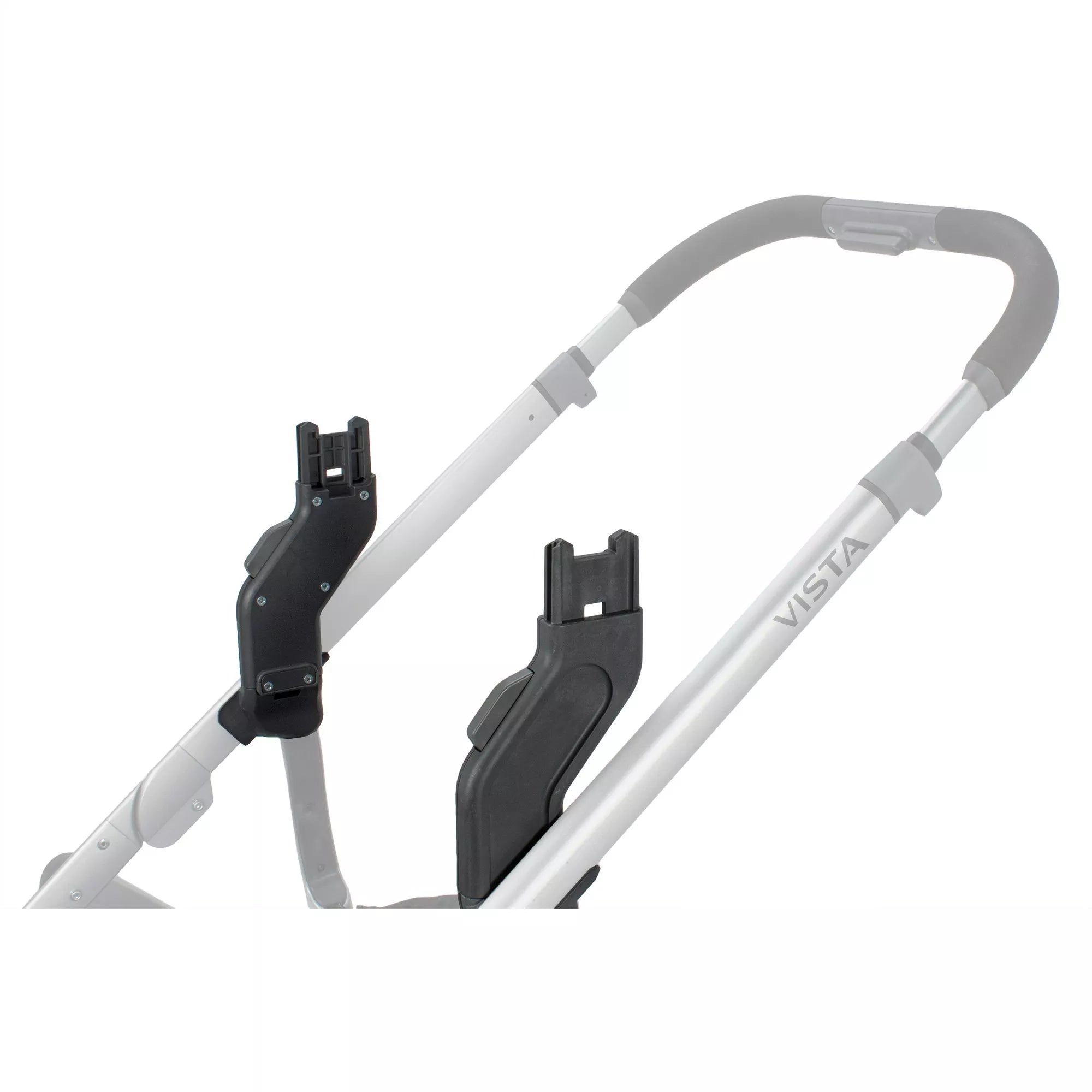 The UPPAbaby VISTA Upper Adaptors allow you fit both the Toddler Seat and Carry Cot to the chassis to carry a newborn and toddler together (also requires Lower Adaptors 31521814 - sold separately). Also used with the Lower Adaptors to fit two Carry Cots or MESA iSize car seats to the chassis for twins. In addition, they give additional space for the Toddler Seat when used with the Rumble Seat fitted.