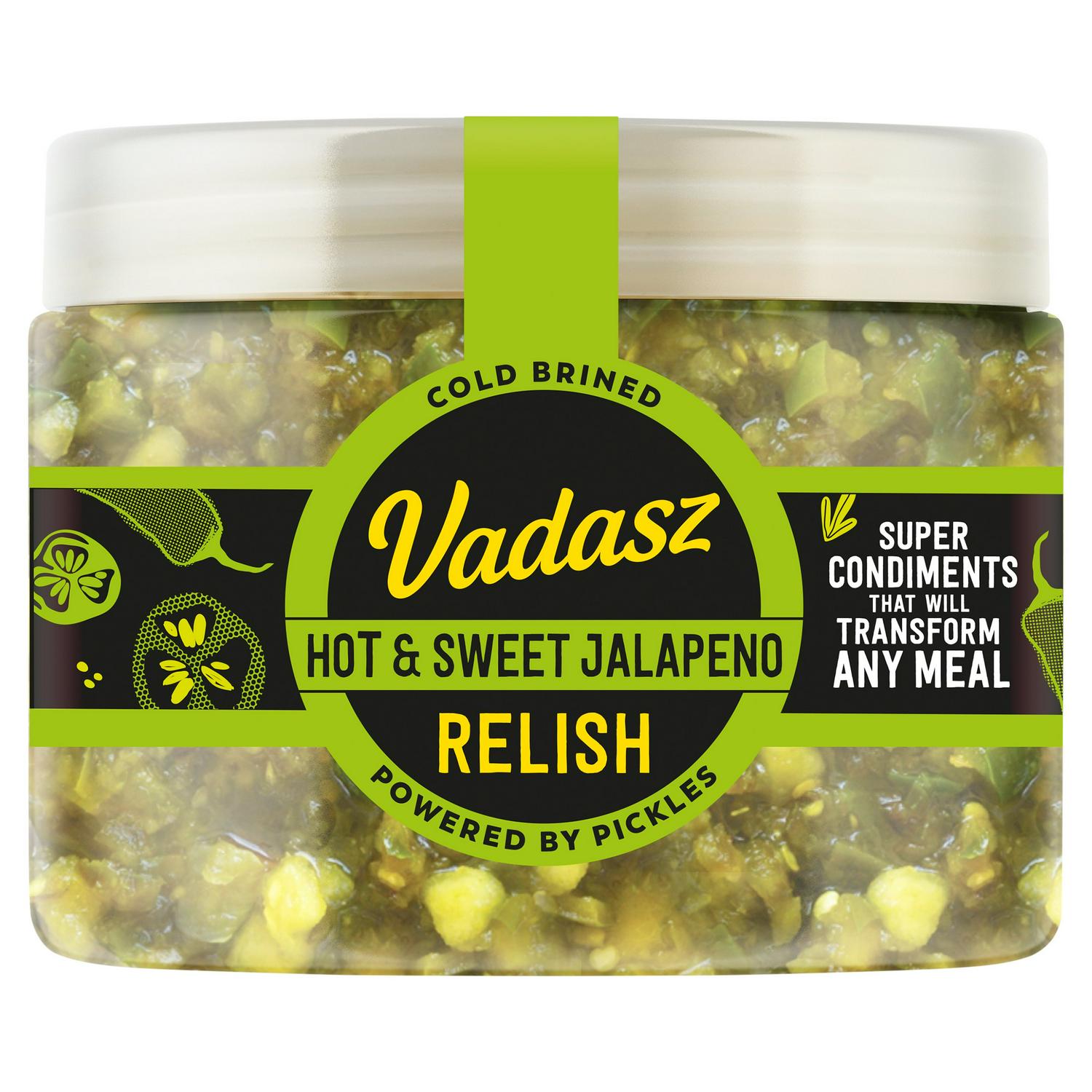 This Vadasz Hot & Sweet Jalapeno Relish is a vibrant condiment packed into a 400g jar. It blends fiery green jalapeños with apple and onion, all suspended in a sweet, spiced vinegar brine. The relish is made using a cold-brining process, which helps maintain texture and flavour intensity.