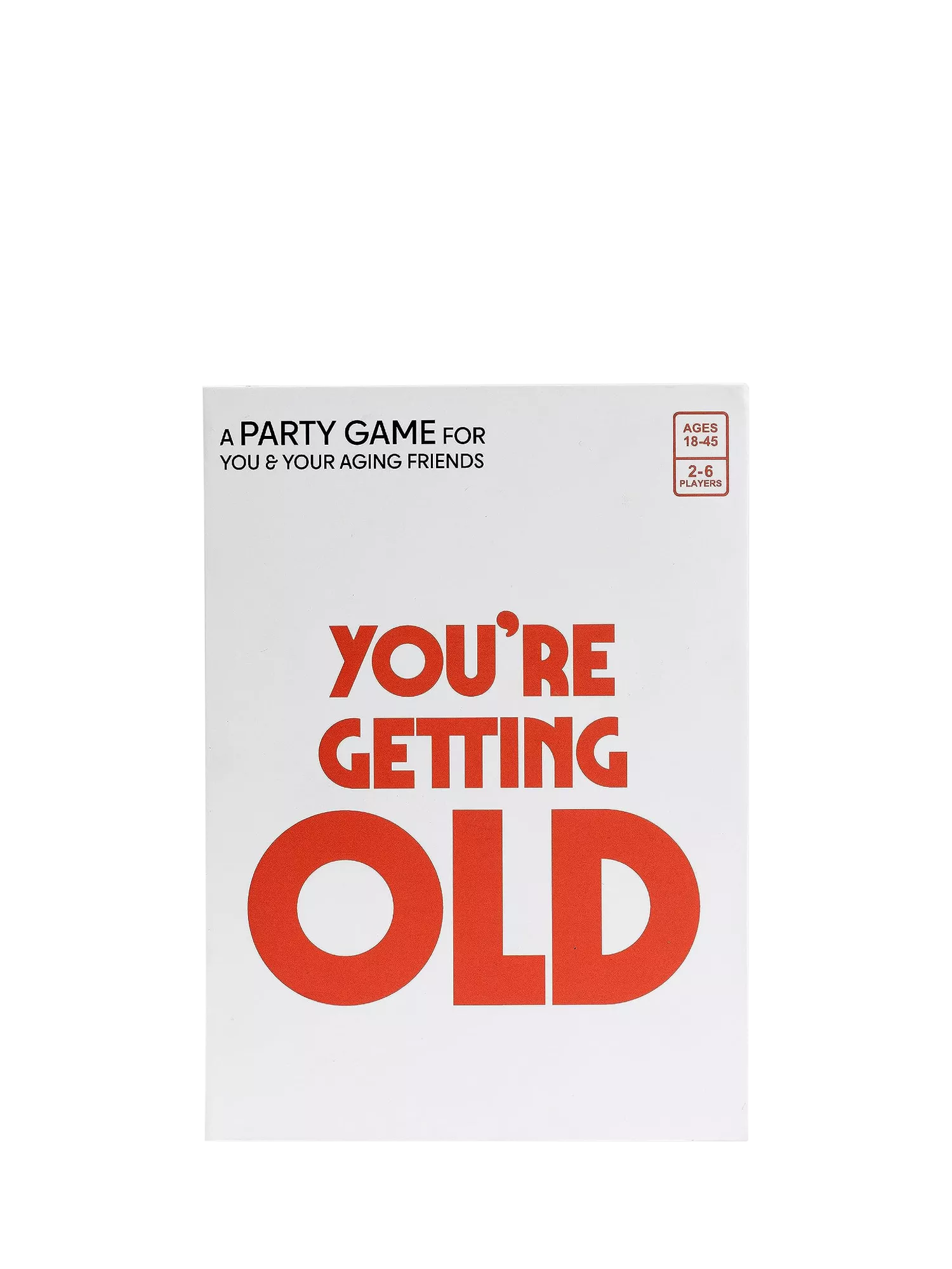 How To Play: Draw cards with an “old” and “redeem” prompt. Players move their pieces up and down their “Path To Getting Old” card based on if they’ve said or done what’s listed in the prompt. For example, if you’ve every scrolled Spotify’s top 100 list and thought to yourself, “Who the hell are these people?” you have to move up a space.
