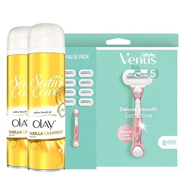 venus comfortglide coconut plus olay razor blades x3venus female razor blades are designed with a womans body in mind venus comfortglide coconut plus olay womens razors have 5 blades for a smooth close shave that lasts the razor blade refills come equipped with olay moisture bars that release body butters with a light coconut fragrance for glide and comfort with a pivoting design that adjusts to your bodys contours any venus blade refill fits any venus razor handle except simply venus and venus pubic hair and skin refill blades 3 comfortglide plus olay coconut womens blade refills each with 5 blades for a smooth close shave that lasts less dryness each razor blade refills lush olay moisture bars have a light coconut fragrance and lock in moisture to keep skin dryness in check soft silky skin for days adaptive design pivoting head design that adjusts to your bodys contours no awkwardly angling your razor skin protection the razors moisture bars release a rich body butter lather guarding your skin against nicks cuts and irritation brings seamless glide to every stroke any venus blade refill fits any venus razor handle except simply venus and venus pubic hair and skingillette satin care with olay shaving gel vanilla 200mlsoft smooth skin begins with gillette satin care with a touch of olay vanilla cashmere womens shaving gel its luxurious lather infused with 4x more moisturizers vs gillette satin care sensitive skin this formula helps protect skin against moisture loss while shaving pair with venus olay razor for irresistibly smooth skin womens shaving gel formula that helps protect skin against moisture loss while shaving remarkable coverage helps prevent missed spots helps protect skin against moisture loss while shaving with 4x more moisturizers vs satin care sensitive skin vanilla cashmere with a touch of olay
