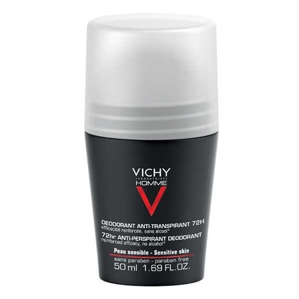 take care of sensitive skin with the vichy homme extreme antiperspirant rollon formulated for men the fresh energising formula uses a blend of antiperspirant ingredients and oligozinc to help prevent perspiration and soothe discomfort for up to 72 hours offering a soft fresh feel on application with no white marks left on skin designed for men with sensitive skin