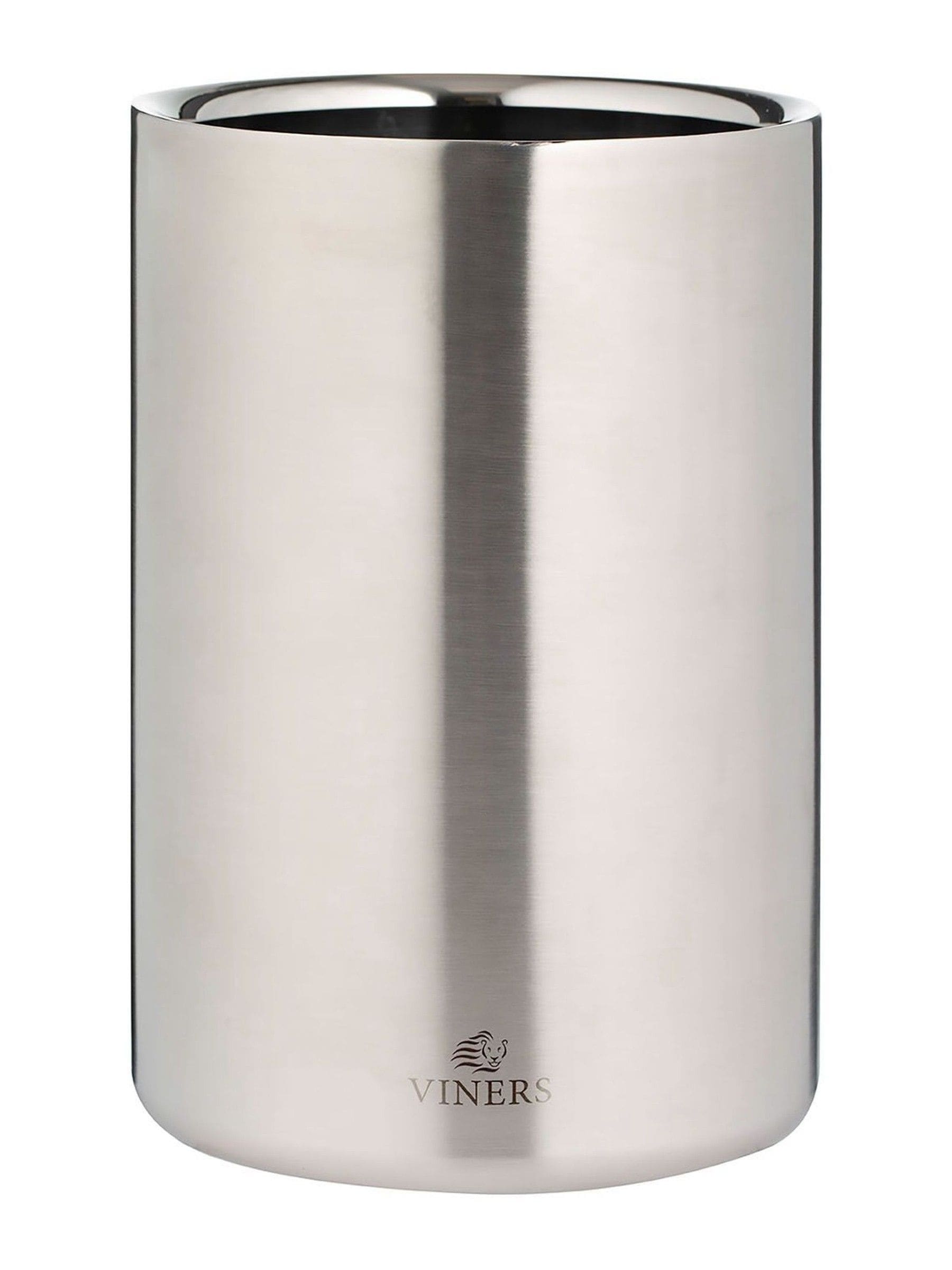 This double wall wine cooler is indispensable for any entertainer at home. Keep your bottle cold and insulated in this stylish ice container, ready to serve chilled drinks on any occasion. This Viners bottle cooler comes with an insulating layer, designed to keep your bottle cool straight from the chiller or fridge without leaving water rings. It has a 1.3 litre capacity, and is 18cm in height x 12cm wide. Made from fine quality steel, our bottle cooler is strong, has a mirror polished interior and a satin brushed silver effect on the exterior. Hand wash only without abrasive sponges. Wash before first use. Entertain, create and serve with flair and quality thanks to the Viners Barware Collection. This range has all the tools to professionally entertain guests at home. Viners has existed for over 110 years and has become a much-loved British brand and household name, steeped in heritage.