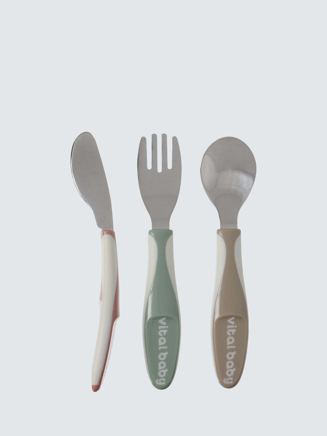 Vital Baby Nourish Big Kid Cutlery Pack Of 3 supports growing eaters during the weaning stage. These durable utensils feature easy-grip handles suitable for developing coordination. This three-piece set promotes independent feeding for older babies and toddlers learning new skills. The Organic materials ensure safety and peace of mind for parents using this essential feeding accessory daily.