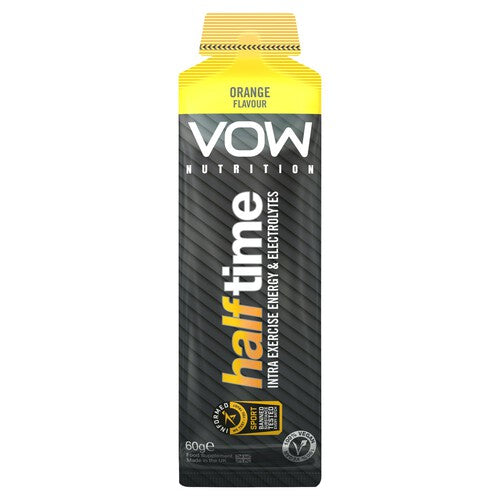 How half time can help you: The Vow Nutrition half time gel delivers a fast supply of easily digestible carbohydrates for energy, whilst providing essential electrolytes. Half time has been designed to be taken during exercise to help prevent dehydration and to improve performance by providing additional energy.