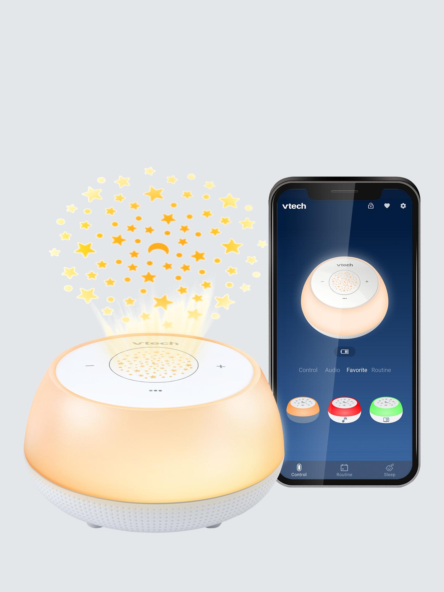 The VTech BC8213 V-Hush Mini Sleep Training Soother assists in creating necessary sleep patterns for infants. This device offers a soothing atmosphere through its colourful night light and a ceiling projector feature. Custom soundscapes stream via Bluetooth speaker, promoting longer, quality rest for the whole family.