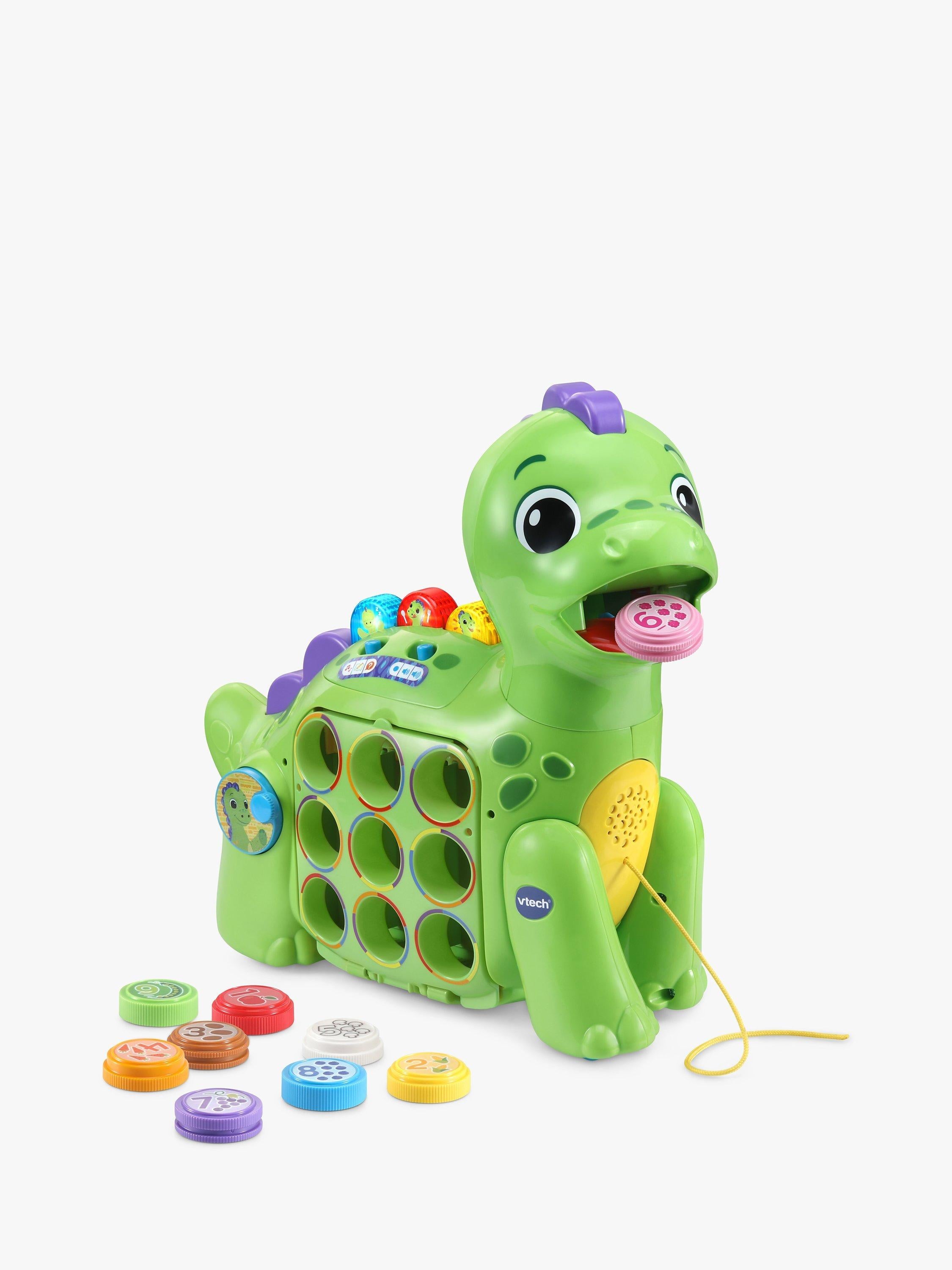 Vtech Chompers The Number Dino is an engaging toy for babies and young children within the Baby, Parent & Kids category. This interactive dinosaur helps little ones learn about numbers, colours, and various healthy foods. Simply pop the nine brightly coloured food pieces into its mouth to trigger fun sounds and immediate educational feedback.