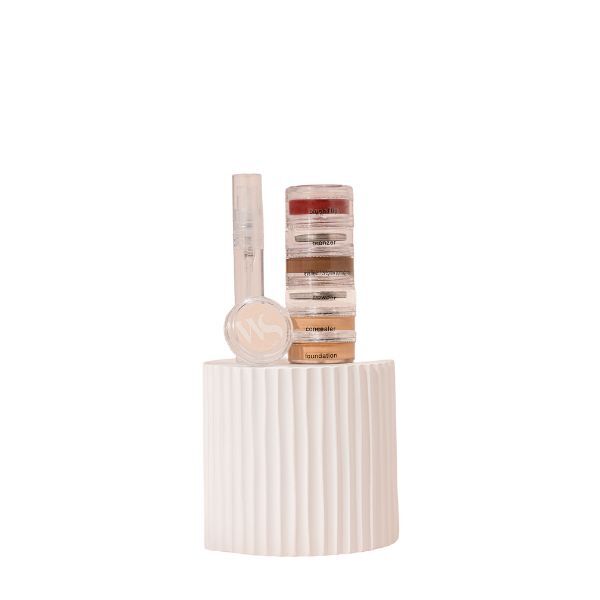 Featuring: Blush / Lip Tint, a perfect red. Bronzer, super pigmented, giving a perfect bronzed glow. Eyeliner / Eyebrow Pomade, the perfect duo, ultra gliding formula. Translucent Powder, gives a flawless smooth lasting finish, super lightweight. Concealer, full coverage, smooth and creaseless wear. Foundation, full coverage, perfect for all skin types. Setting Spray, sets makeup and keeps makeup on all day.