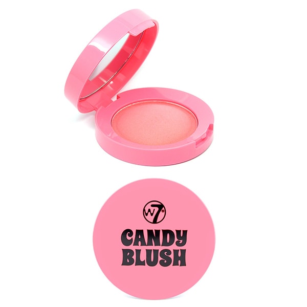 the w7 candy blush is a dome powder blusher with a highly pigmented and long lasting formula
