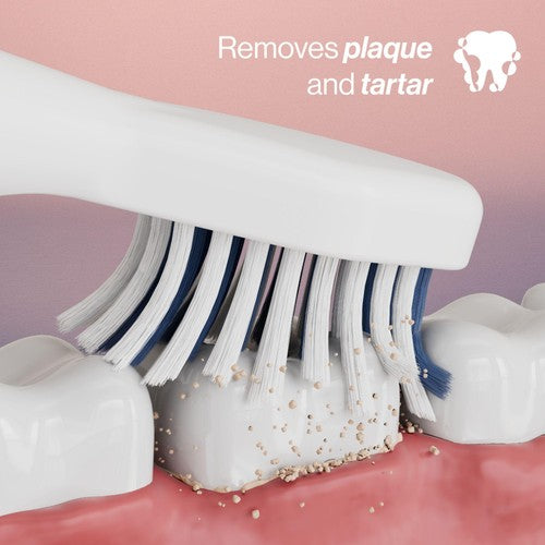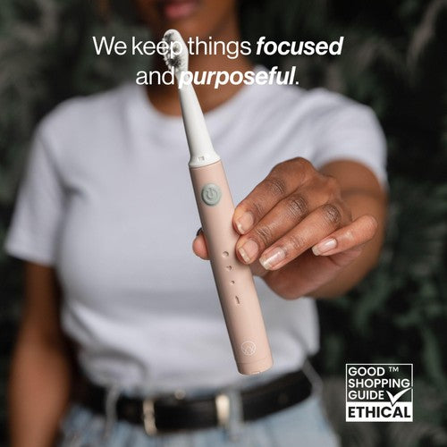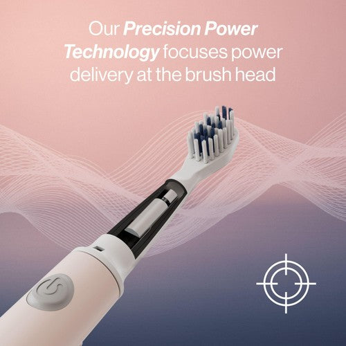 Precision-Power Technology, Focused power delivery at the brush head, Recycled Plastic Handle, 3 easy cleaning modes and integrated timer, Soft bristles made from castor oil, Rechargeable battery, Removes plaque and tartar, Bio-plastic brush head, Two minute timer, Roll-proof design