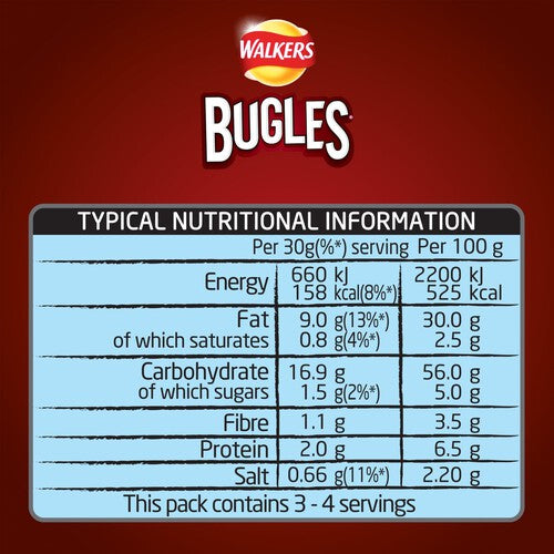 Discover our Walkers Bugles Snacks - a fun cone shaped snack for a tasty crunch. Enjoy the great taste of Walkers in a fun shape with a unique texture. Can't keep your hands off them? Walkers Bugles are also available in Cheese and Sour Cream and Black Pepper flavours. Discover the wider range of Walkers Snacks. Why not try Walkers Mix Ups? All your favourite Walkers snacks in one bag - 4 different snacks = 4 x the fun!