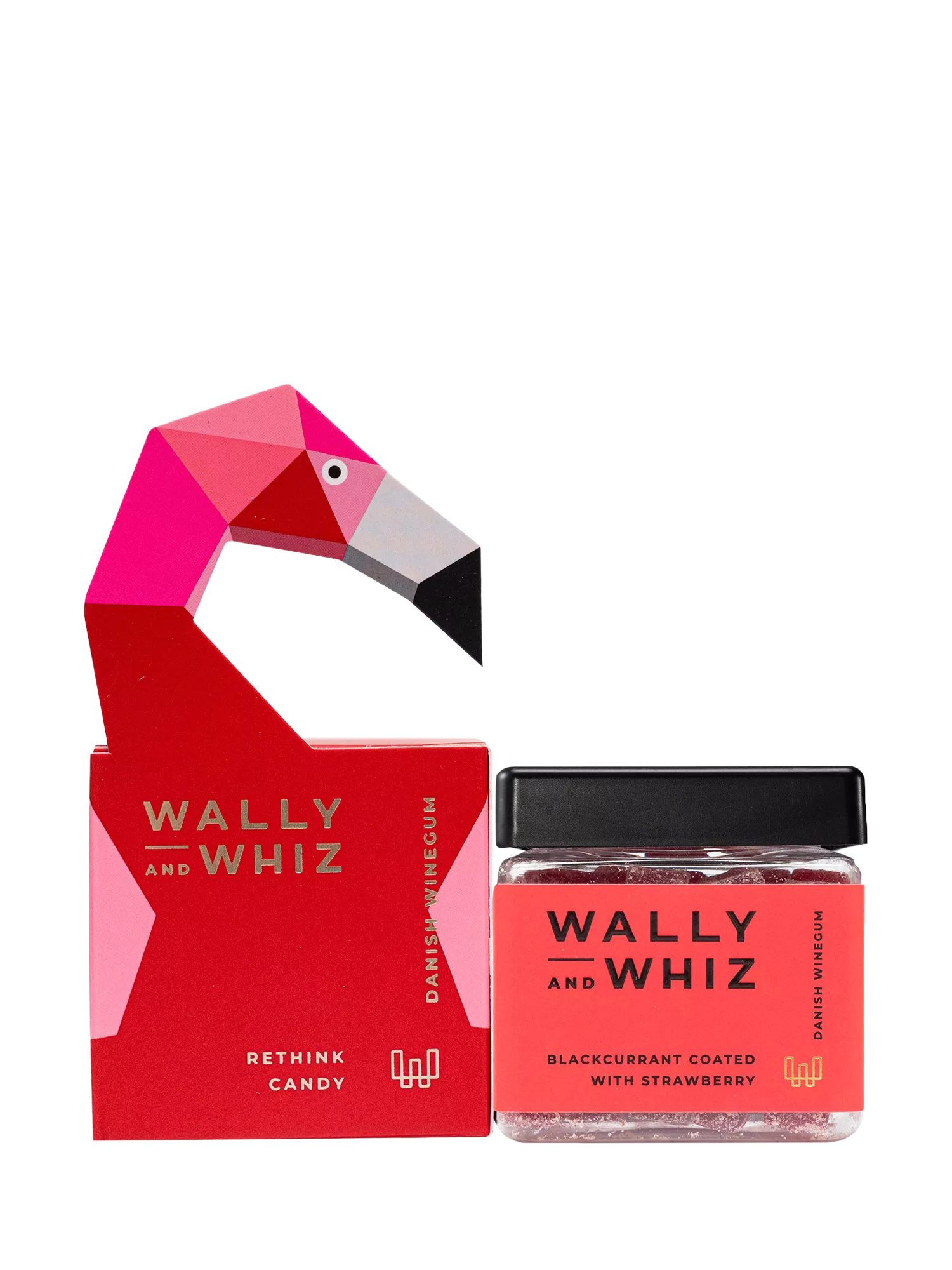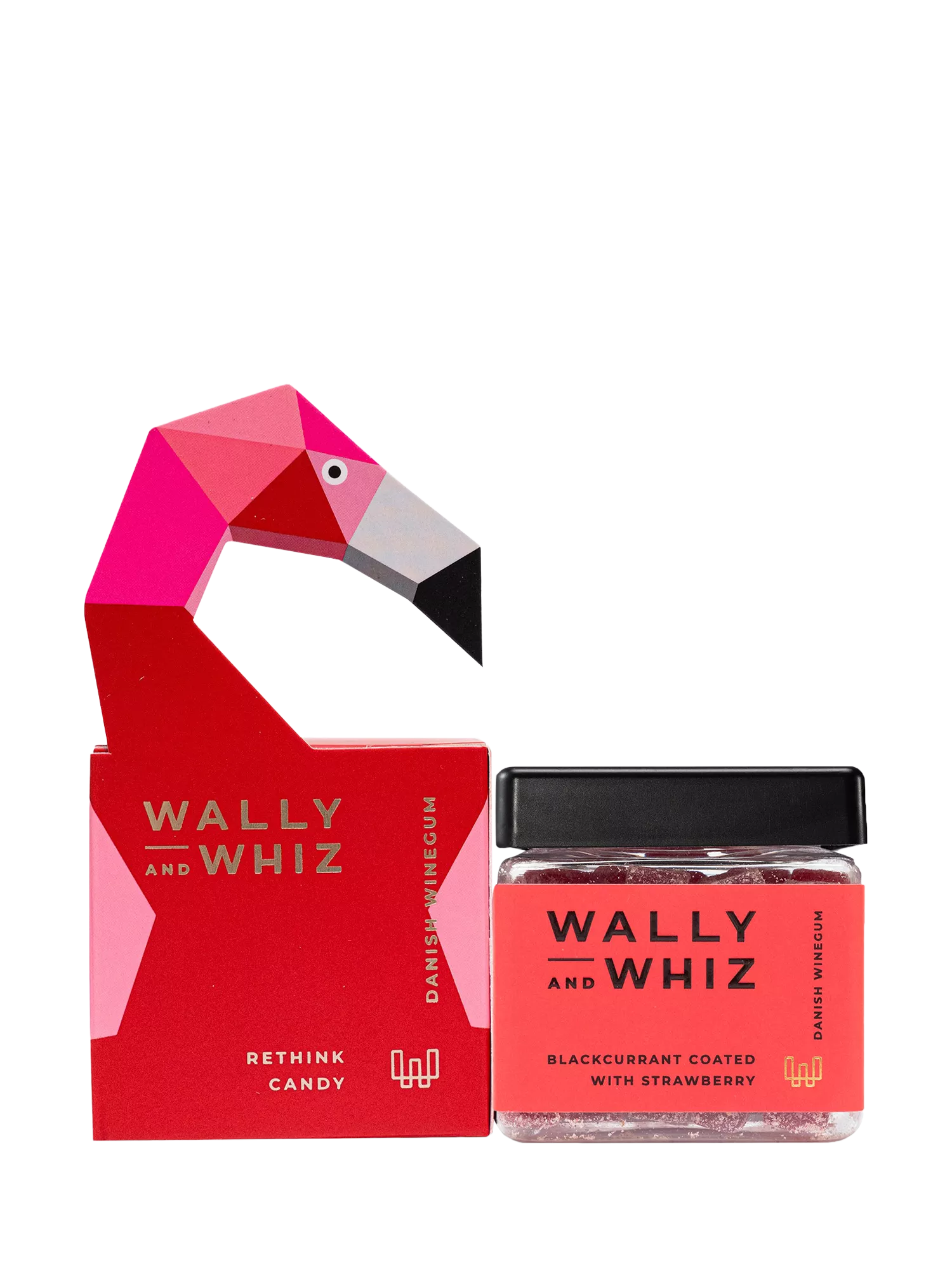 Indulge in a delightful taste sensation with Wally and Whiz Red Flamingo Blackcurrent Coated Strawberry Winegums – a unique blend of tart blackcurrant and sweet strawberry in every bite.
