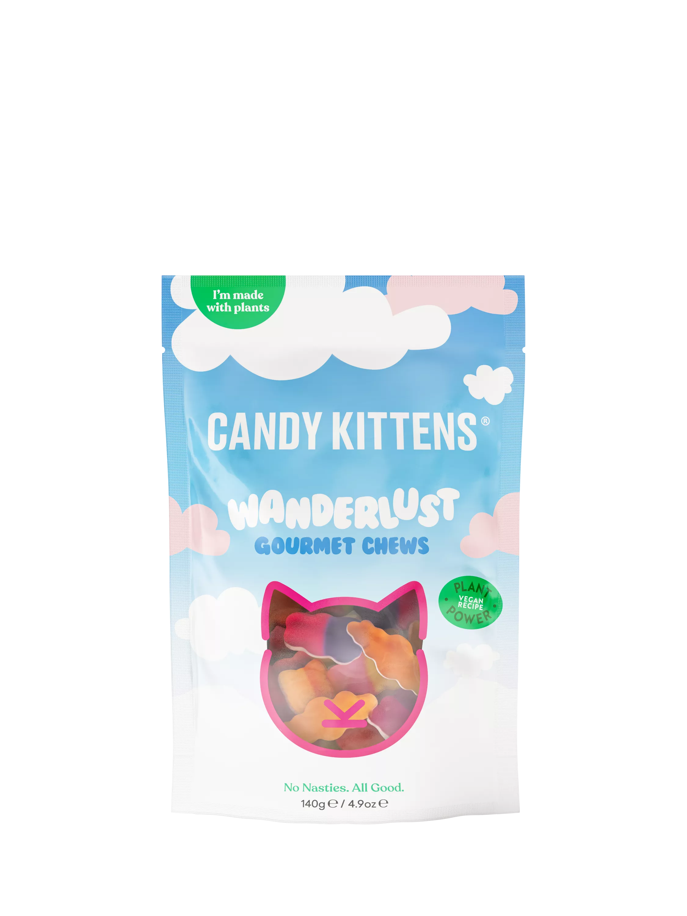 Indulge in a delightful mix of vegan fruity chewies! Wanderlust Vegan Candy Kittens offer a unique blend of foamy and gummy textures, perfect for satisfying your sweet tooth.