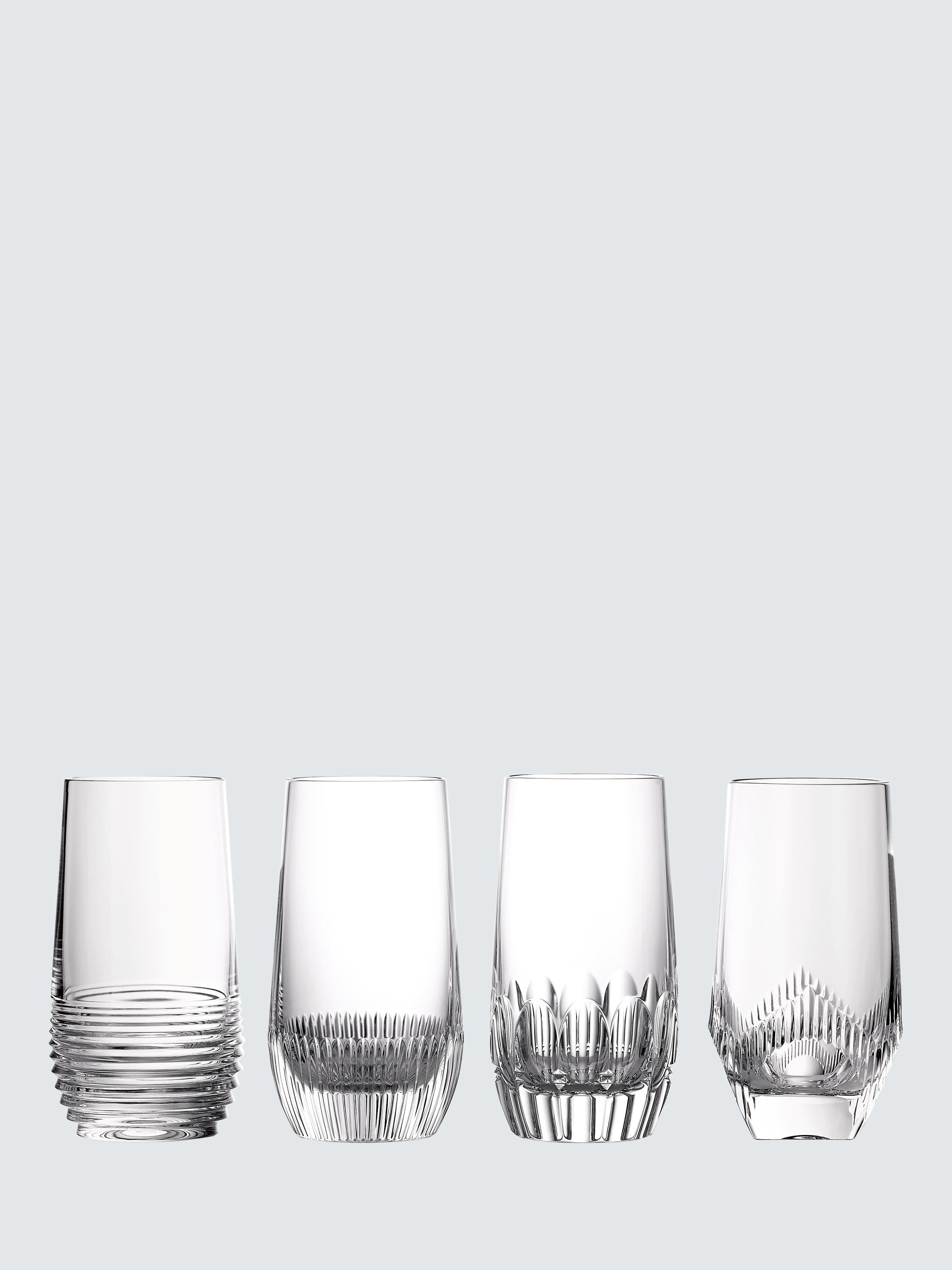 These crystal glass highballs are expertly designed to elevate the taste and aromas of long-drink cocktails. Made from the brand's finest crystal, providing beautiful clarity and superior strength, the set features four different cut-glass patterns: Argon, Talon, Neon and Circon. Presented in a Waterford gift box.