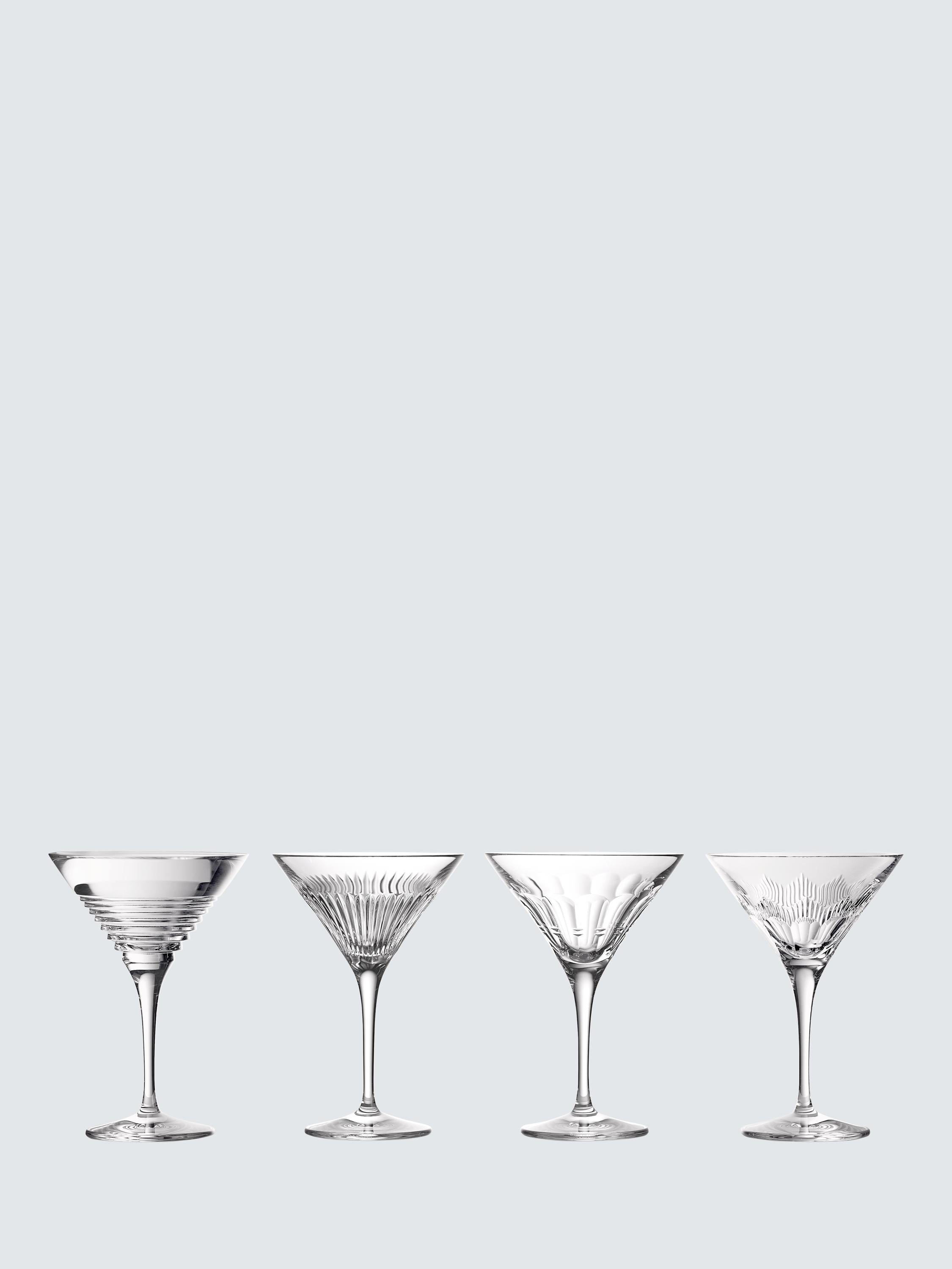 These four crystal glasses are expertly crafted to enhance the taste and aroma of your favourite Martini-based cocktails. Each one features a different Waterford cut glass pattern: Argon, Talon, Neon and Circon. Presented in a Waterford gift box.