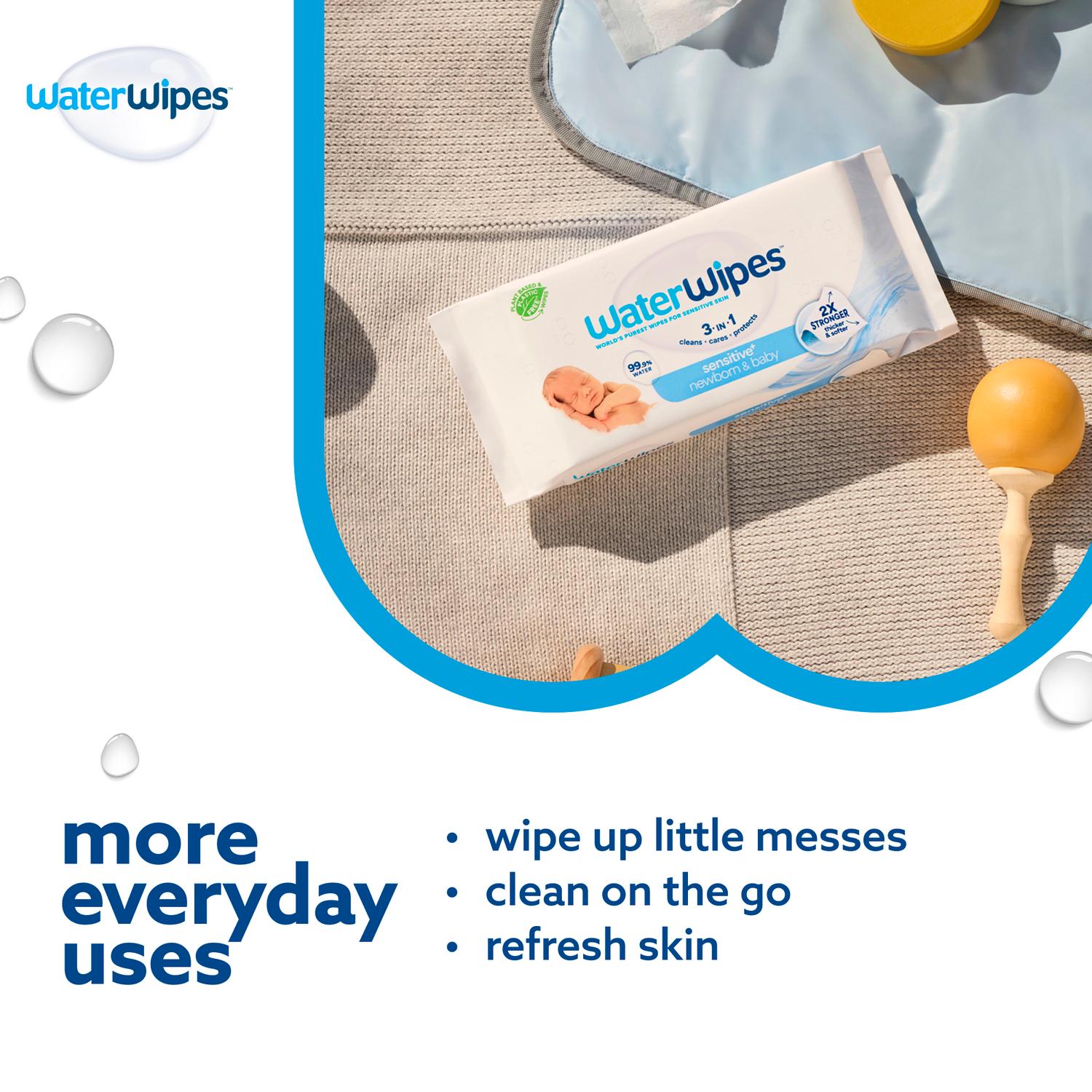 EVERYDAY USE ON SENSITIVE SKIN: When life plays dirty, WaterWipes plays it clean. Ideal for cleaning small messes and refreshing skin on-the-go, these disposable wipes make the perfect daily essential.