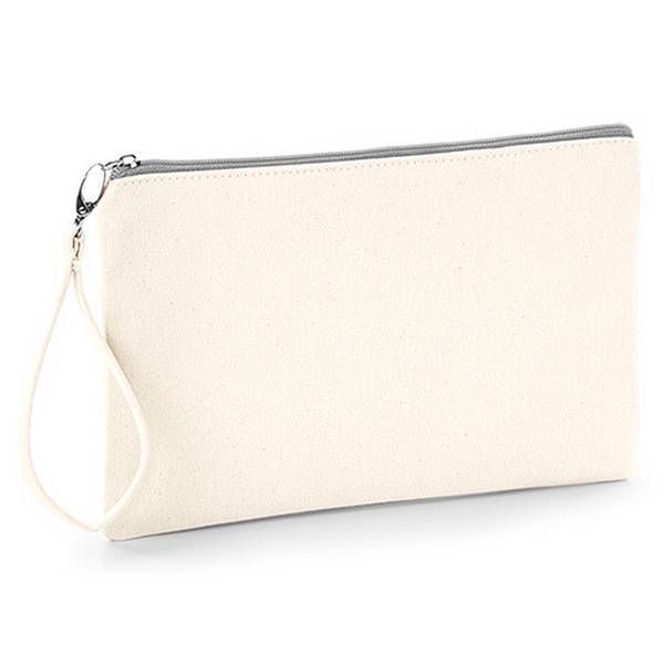 womens pouch made from a premium heavyweight fabric detachable wristlet strap 6in long contrast zip closure capacity 1 litre 100 brushed cotton canvas