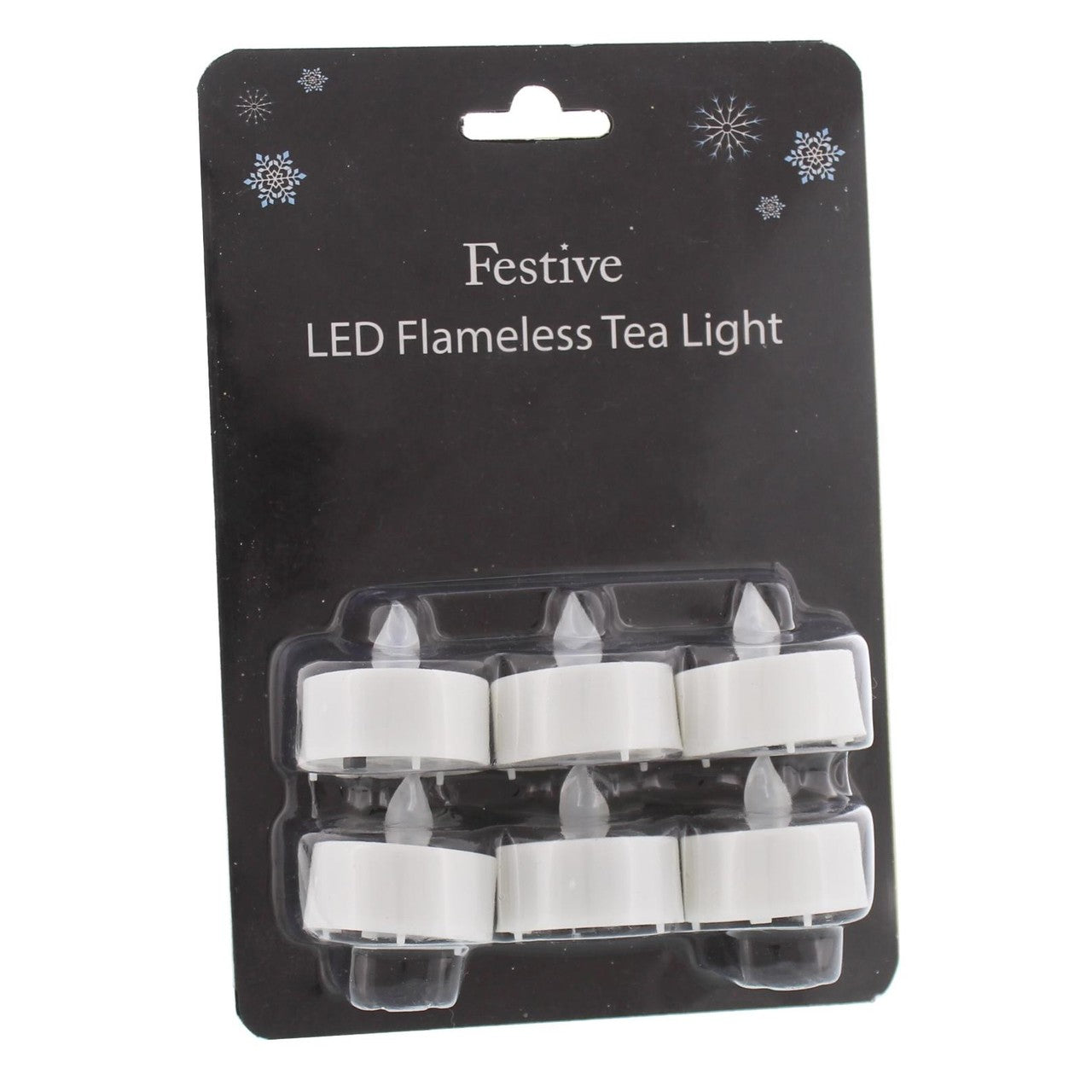 These white LED flameless tealights are supplied in a convenient set of six for your immediate decorative needs. They emit a warm, yellow flickering light safely, perfectly mimicking the gentle glow of real candles without any fire hazard. Use this set to easily enhance the ambiance of any indoor setting for parties or seasonal events.
